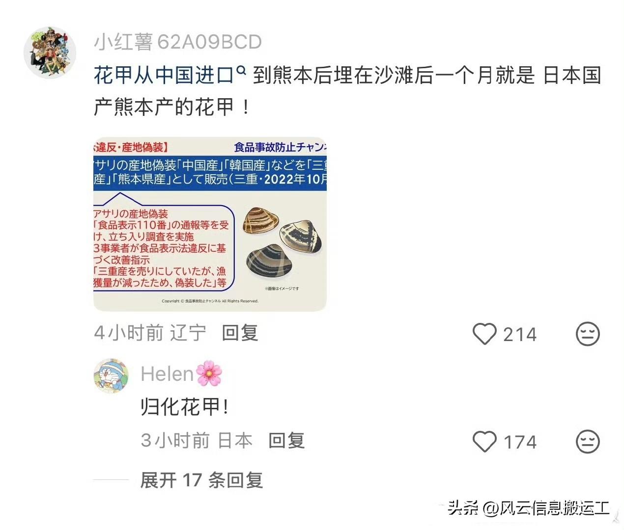 日本公司就以这个为卖点,玩掩耳盗铃这一套,比如花甲从中国进口到熊本后埋在沙滩后一个月,就是日本国产熊本产的花甲!