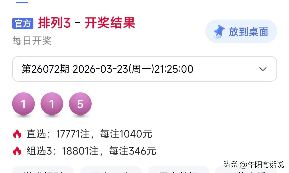 排列三26073期号码共享,重点关注奇数号码继续热开 开奖快讯 排列三26072期开奖号码为:1 1 5 本期开奖号码再次以组三形态开出,而且与上期所开三码完全重号。只不过上期所开奖号是以号码5为对码,以号码1为单码,而本期奖号则是以号码1为对码,以号码5为单码开出。 最近几期,开奖号码走势比较反常,连续四期开出组三号码,而且有三期号码1均是作为对码开出。本期所开奖号与上期高度重合,更坐实了近期奖号的反常走势。 大中小号码走势 最近四期,奖号均是由小号和中号组成,而大号则一直处于断区状态。前一段时间,大号走势以温态为主,最近四期热度陡然下降,连续开出四期断区,预计接下来继续以温冷状态开出的概率较大。 组选号码关注 1,2,3,5,6,9 直选号码关注 百位号码:2,6,0,3,5 十位号码:3,9,2,5,6 个位号码:9,5,1,2,8