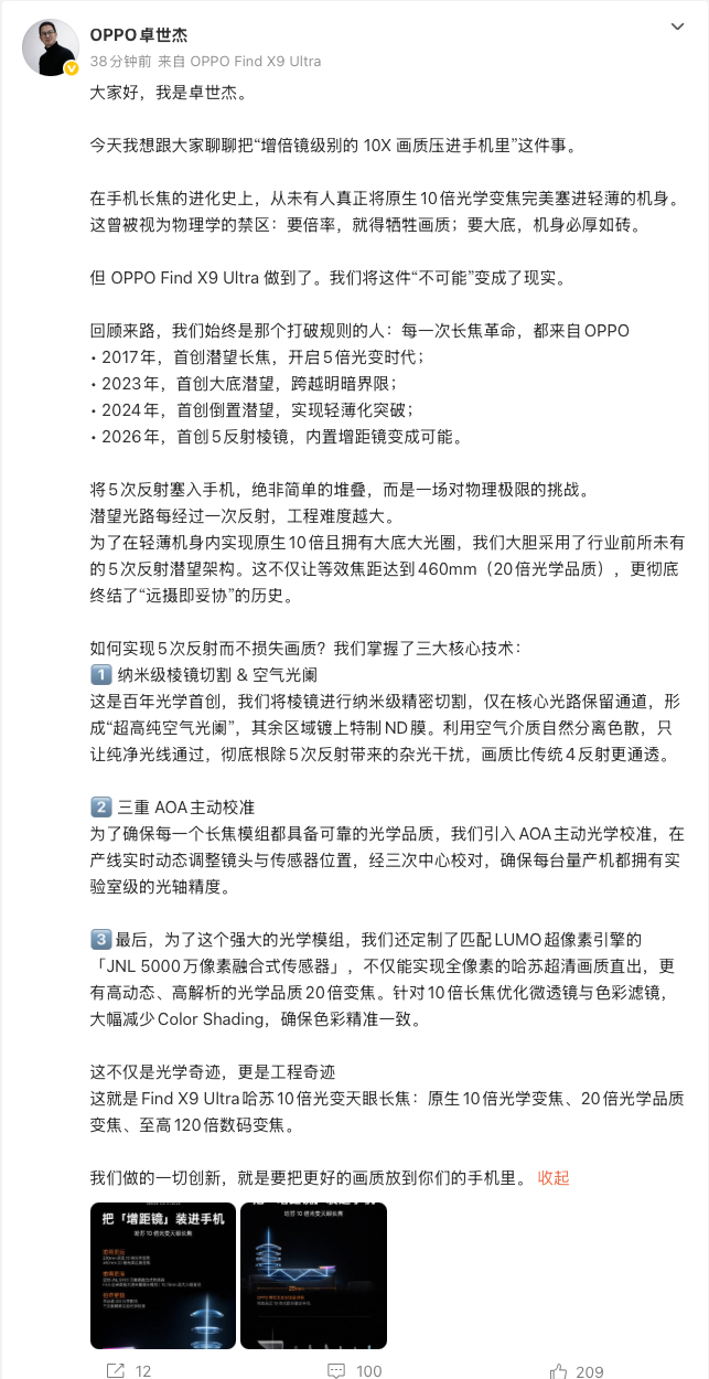 你别说,我还真期待OPPO Find X9 Ultra的这颗10X长焦的表现,放在手机上绝对的硬件领先,之前的三星S23 Ultra的10X长焦硬件到此被超过了