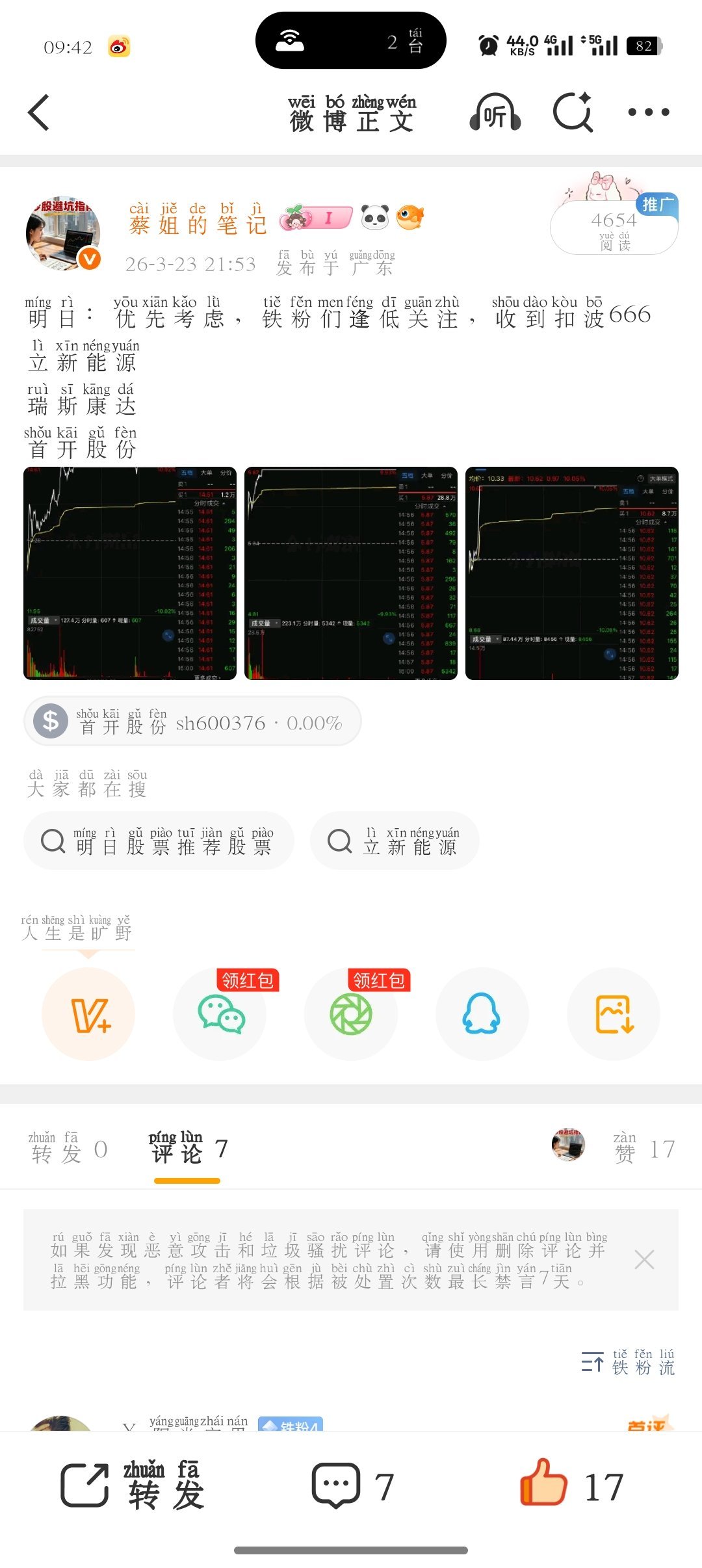 昨晚分享,立新能源,又是涨停,兄弟姐妹们在车上的来波888,没跟上车上扣波666