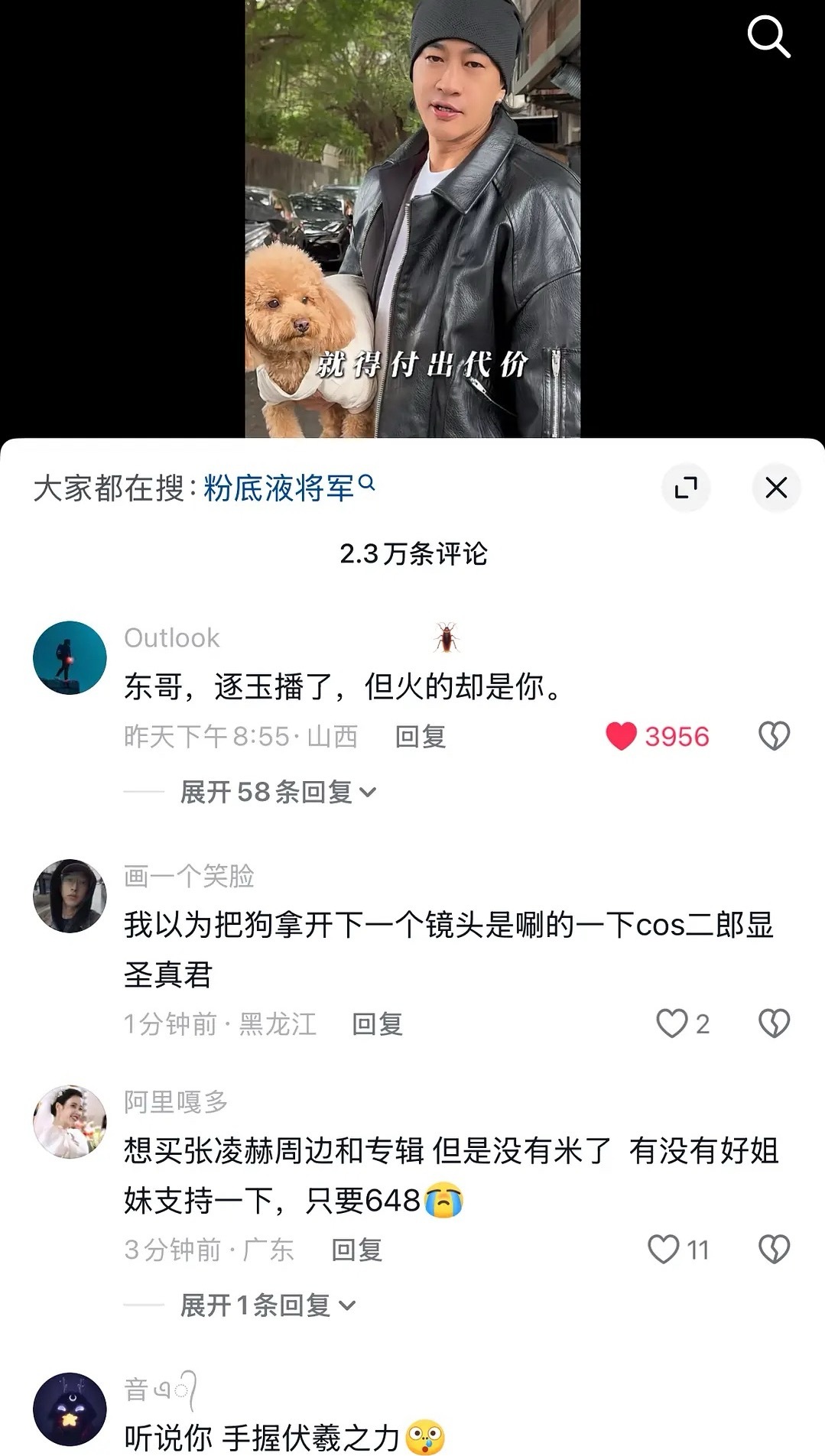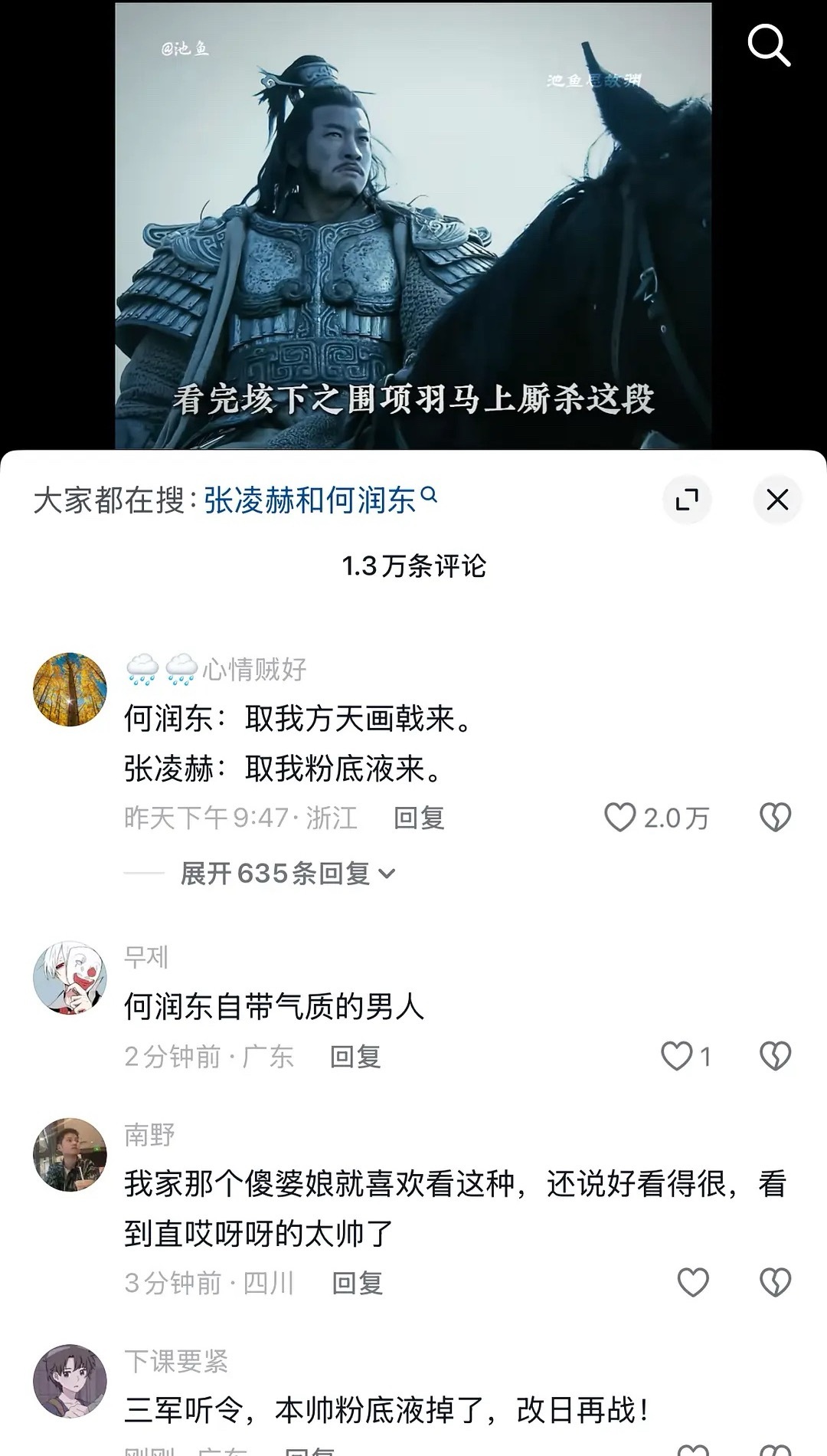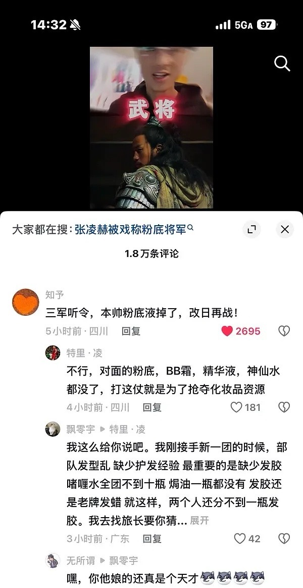 张凌赫被嘲“粉底液”将军,抖上包括但不限于何润东、赵丽颖相关“将军”帖子下面,都
