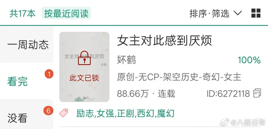 晋江把《女主对此感到厌烦》锁了