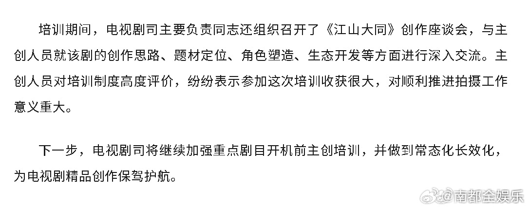 广电实施重点剧目开机前主创集体培训机制广电举行江山大同创作专题培训班 据