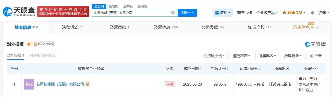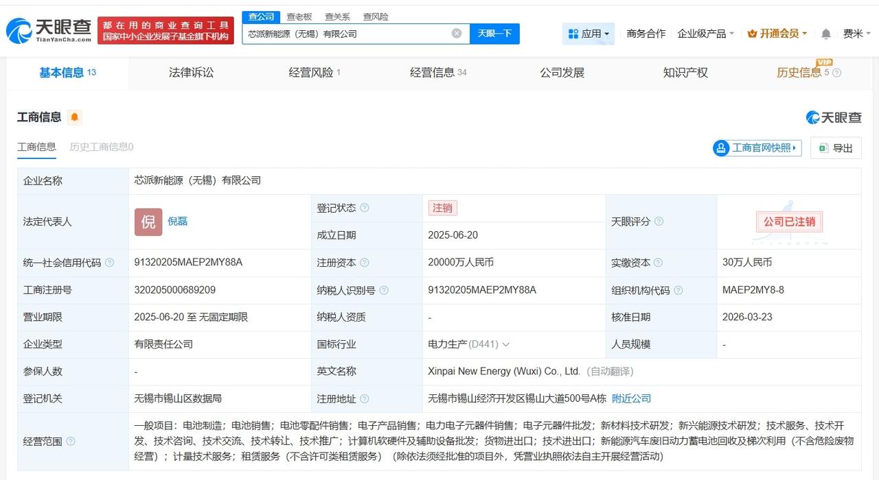 罗马仕电芯供应商唯一子公司注销 安普瑞斯唯一子公司注销 天眼查App显示,近日,芯派新能源(无锡)有限公司登记状态由存续变更为注销。 芯派新能源(无锡)有限公司成立于去年6月,法定代表人为倪磊,注册资本2亿人民币,经营范围包括电池制造、电池销售、电池零配件销售等,由安普瑞斯(无锡)有限公司、刁媛媛、倪磊、华伟共同持股。值得一提的是,目前,安普瑞斯(无锡)有限公司旗下已无存续子公司。 据媒体报道,此前,罗马仕、安克等多品牌召回充电宝,召回原因在于问题电芯,安普瑞斯正是问题电芯供货商之一。 天眼查信息: