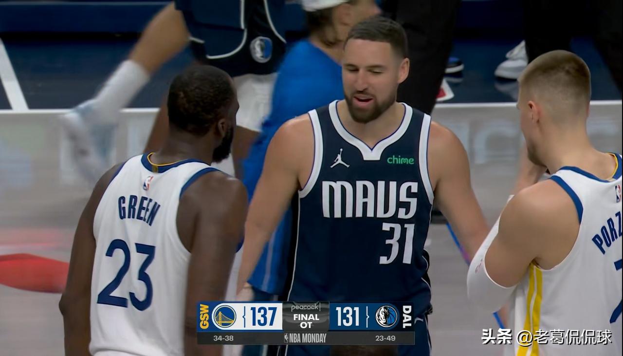 在今天独行侠主场以131:137输给勇士的赛后,发生了特别感人的一幕。当裁判吹响了比赛结束的哨声以后,独行侠老将汤普森立刻走到好兄弟追梦格林的身旁,两人在拥抱致意之后还寒暄了好大一会儿,场面看起来特别的感人。坦白说,当我看到这一幕的时候,我就会情不自禁的想起汤普森和追梦格林在勇士并肩作战的岁月,那真是一段让无数勇士球迷难以忘怀的美好时光。