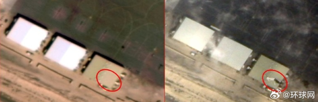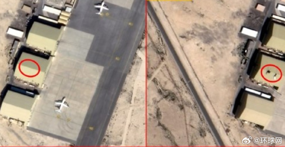 卫星对比图显示,美军位于巴林的谢赫伊萨空军基地内,一处“爱国者”导弹系统的雷达被摧毁。