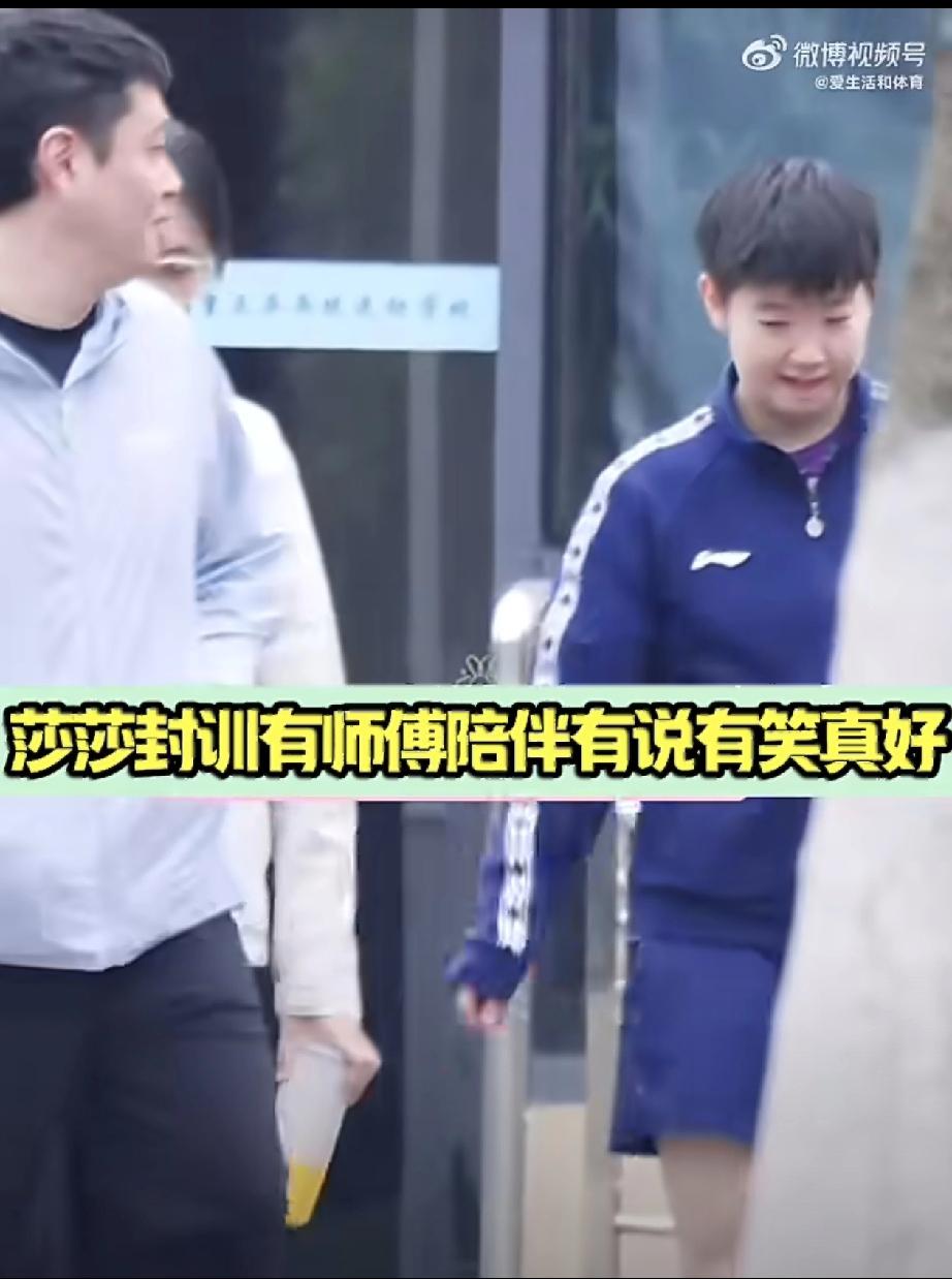 成都封训中的孙颖莎! 这几天莎莎几乎天天都是长袖队服和短裤,一点儿也不怕冷,每天莎莎都和邱怡可指导,还有看起来年轻随和的女按摩师、小队友一起去训练馆,一路有说有笑,特别开心的样子。 能看出来莎莎的训练一定很开心,很顺利,一切都按照着教练的安排在进行。 莎莎继续加油!澳门见[奋斗]!