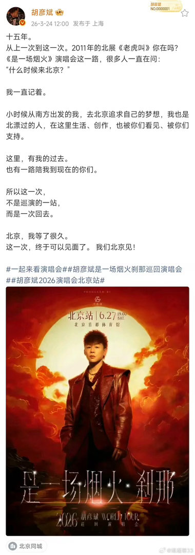 胡彦斌上次北京个唱还是15年前胡彦斌上次北京个唱还是2011 2011年之后,北