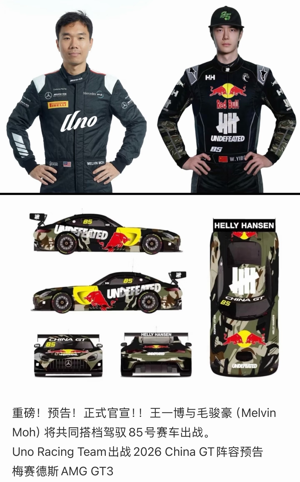 王一博与毛骏豪(Melvin Moh)将共同搭档驾驭85号赛车出战,马来西亚网友已经在期待了