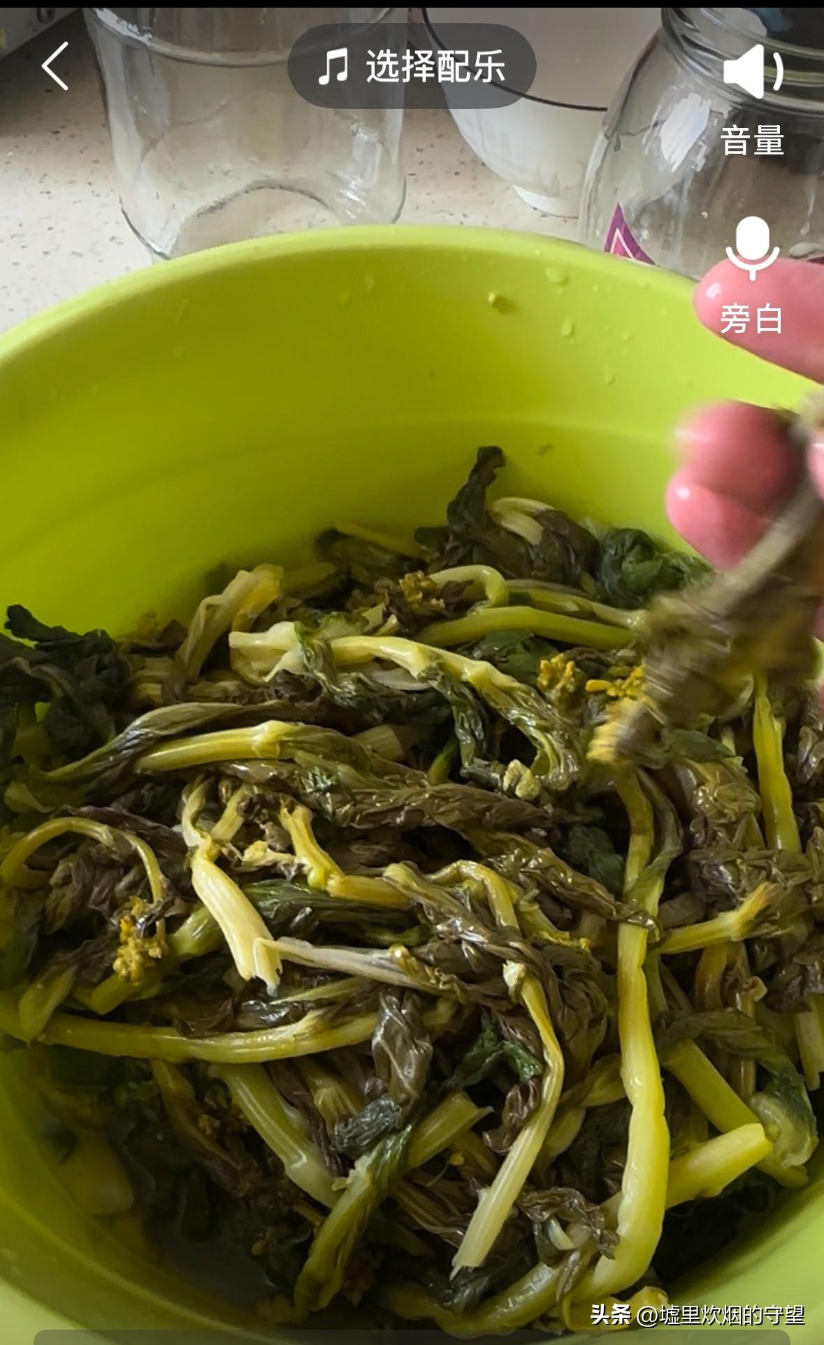 自制酸菜苔,吃不完的菜苔这样存,半年不坏。 家里院子种的白菜苔,经过春雨滋润后