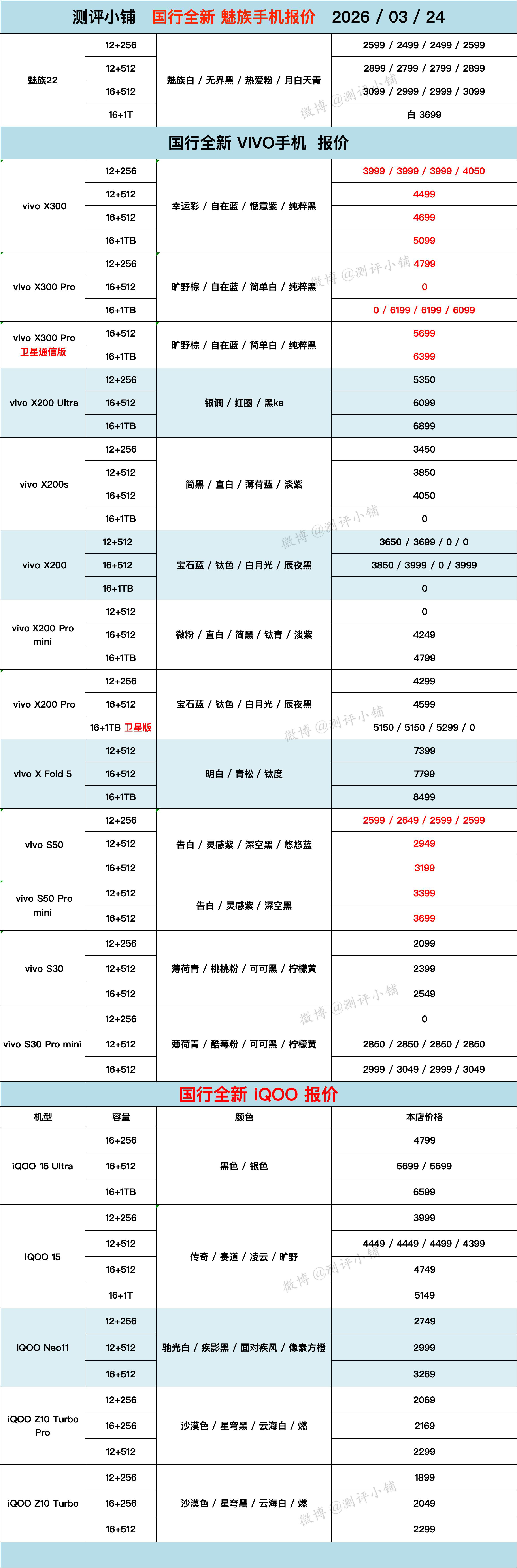 03-24全新机,三星S26 Ultra,小米17 Pro,OPPO Find N6,Reno15,vivo X300 Pro卫星版,一加15,IQOO15等更新