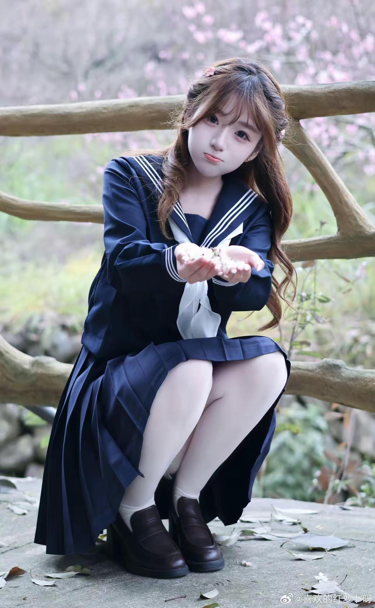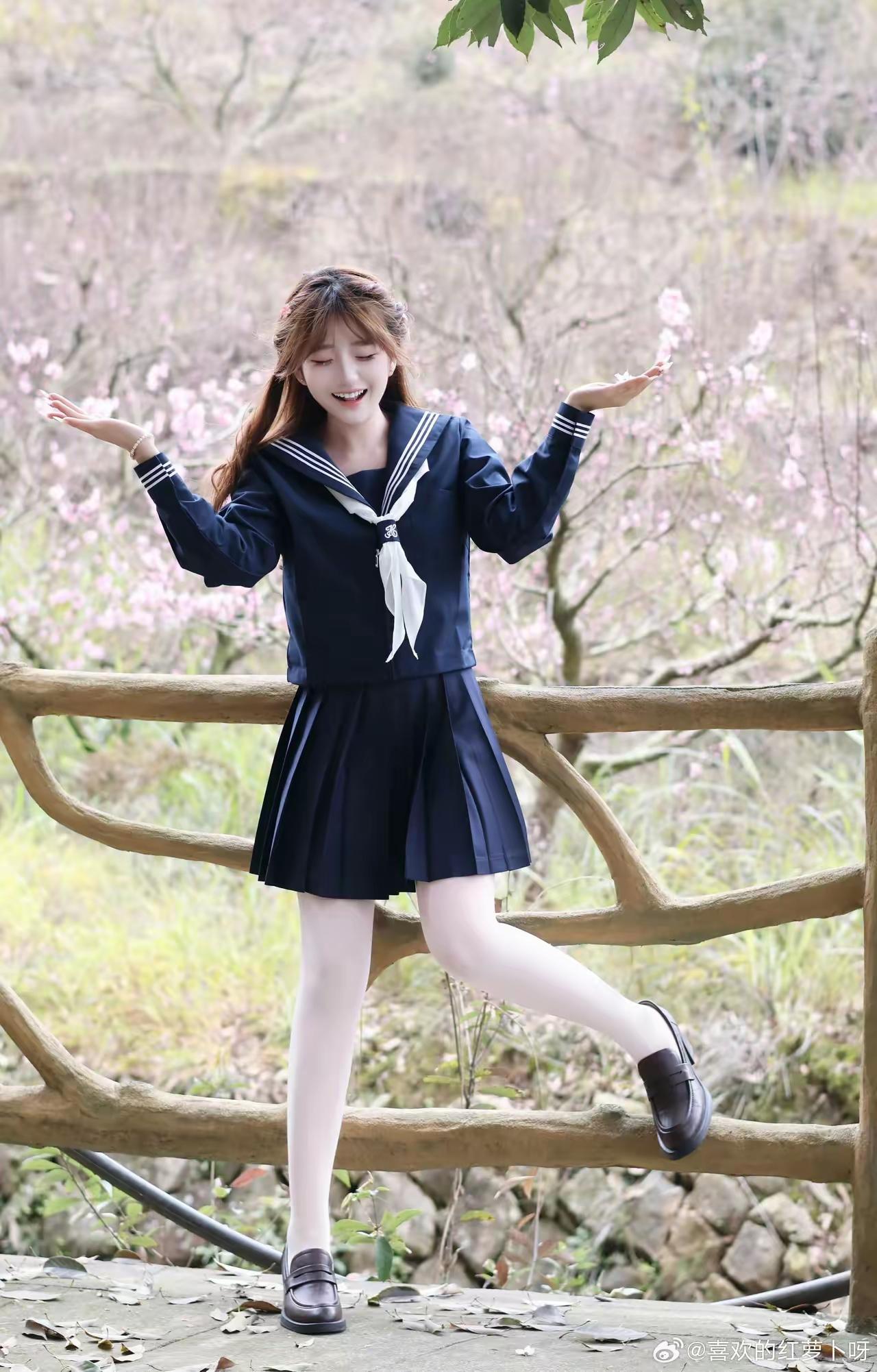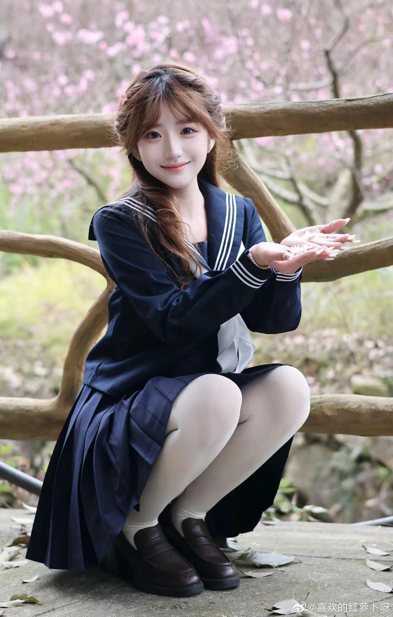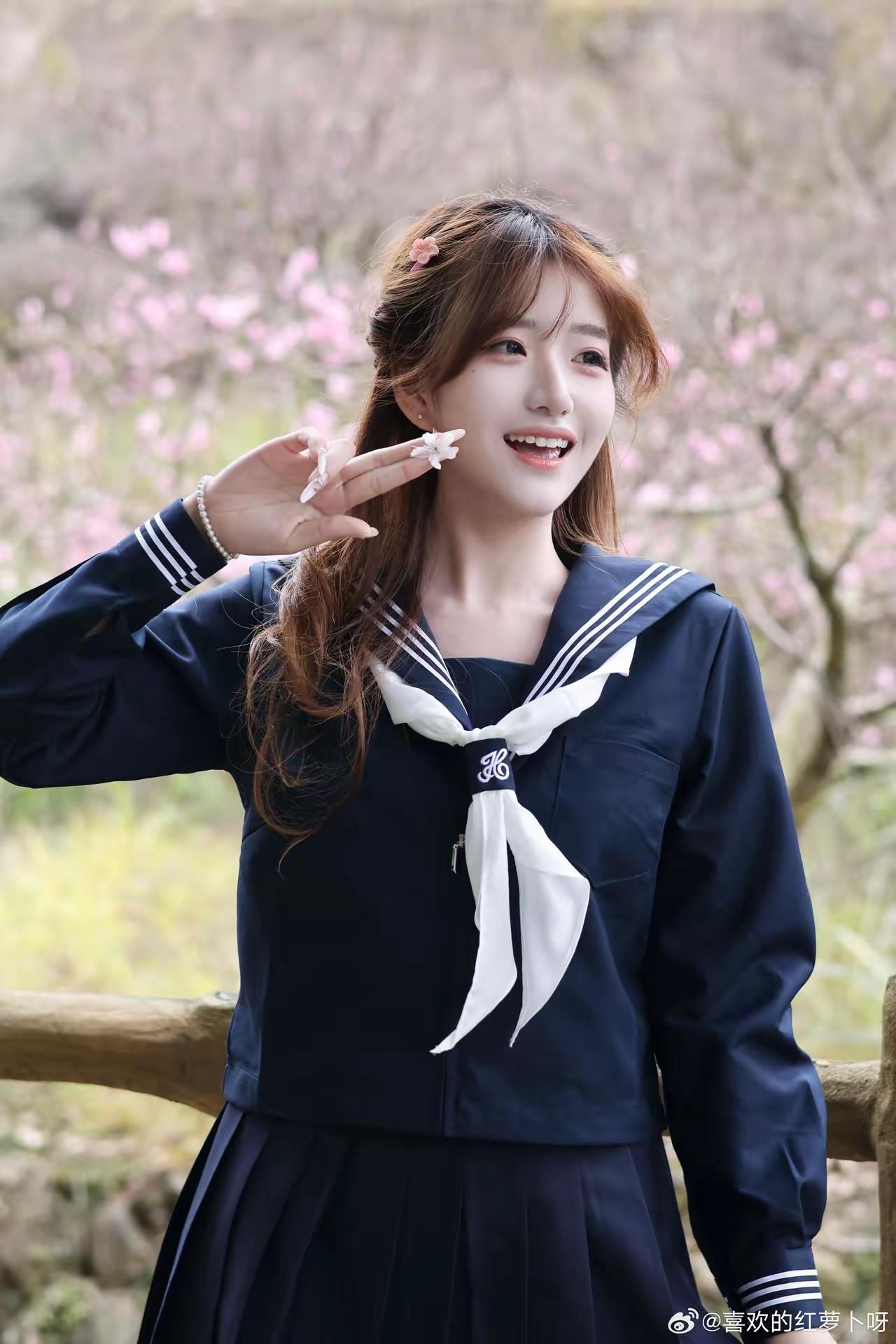 樱花树下,少女微笑,青春洋溢!🌸😊