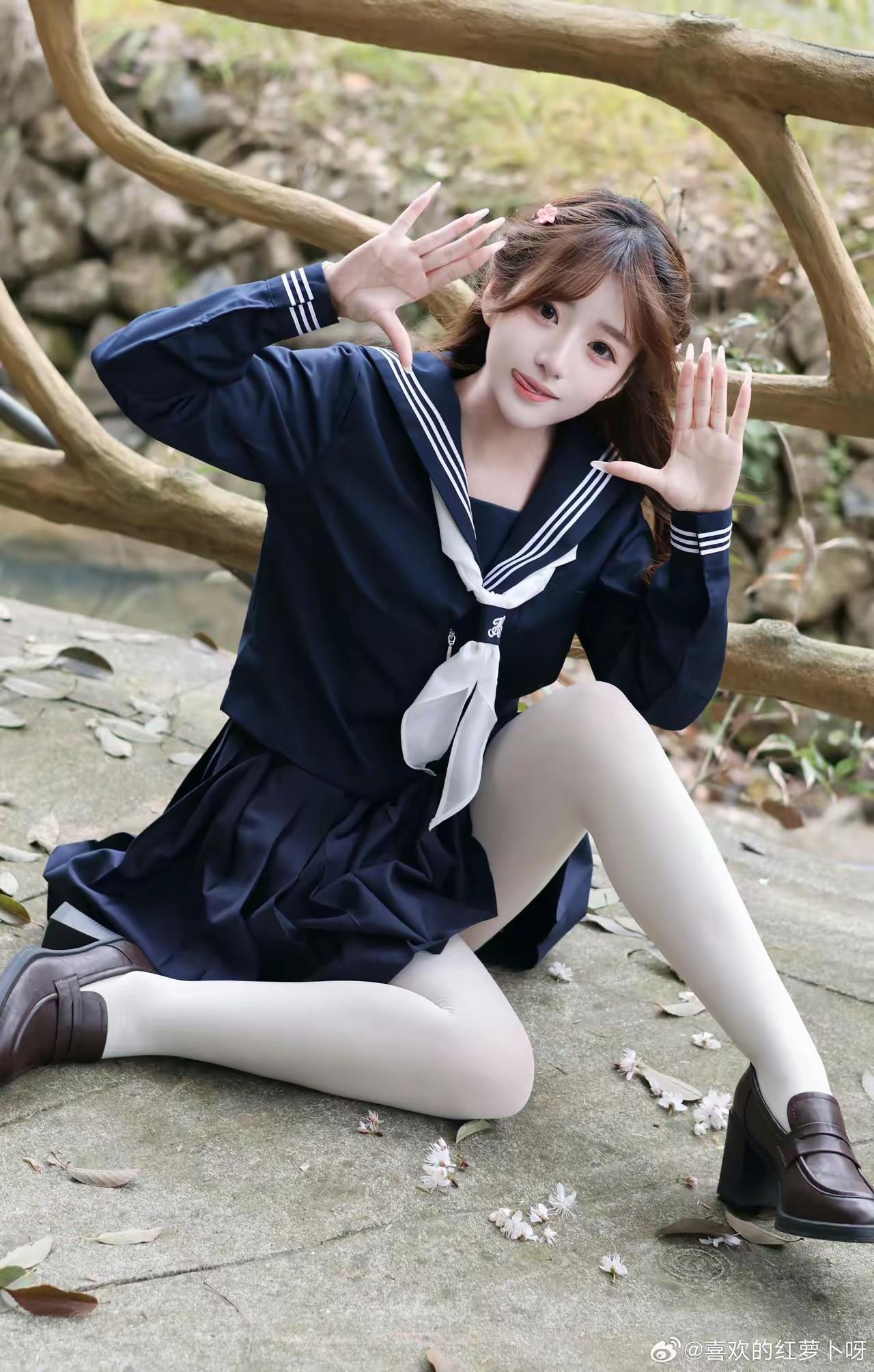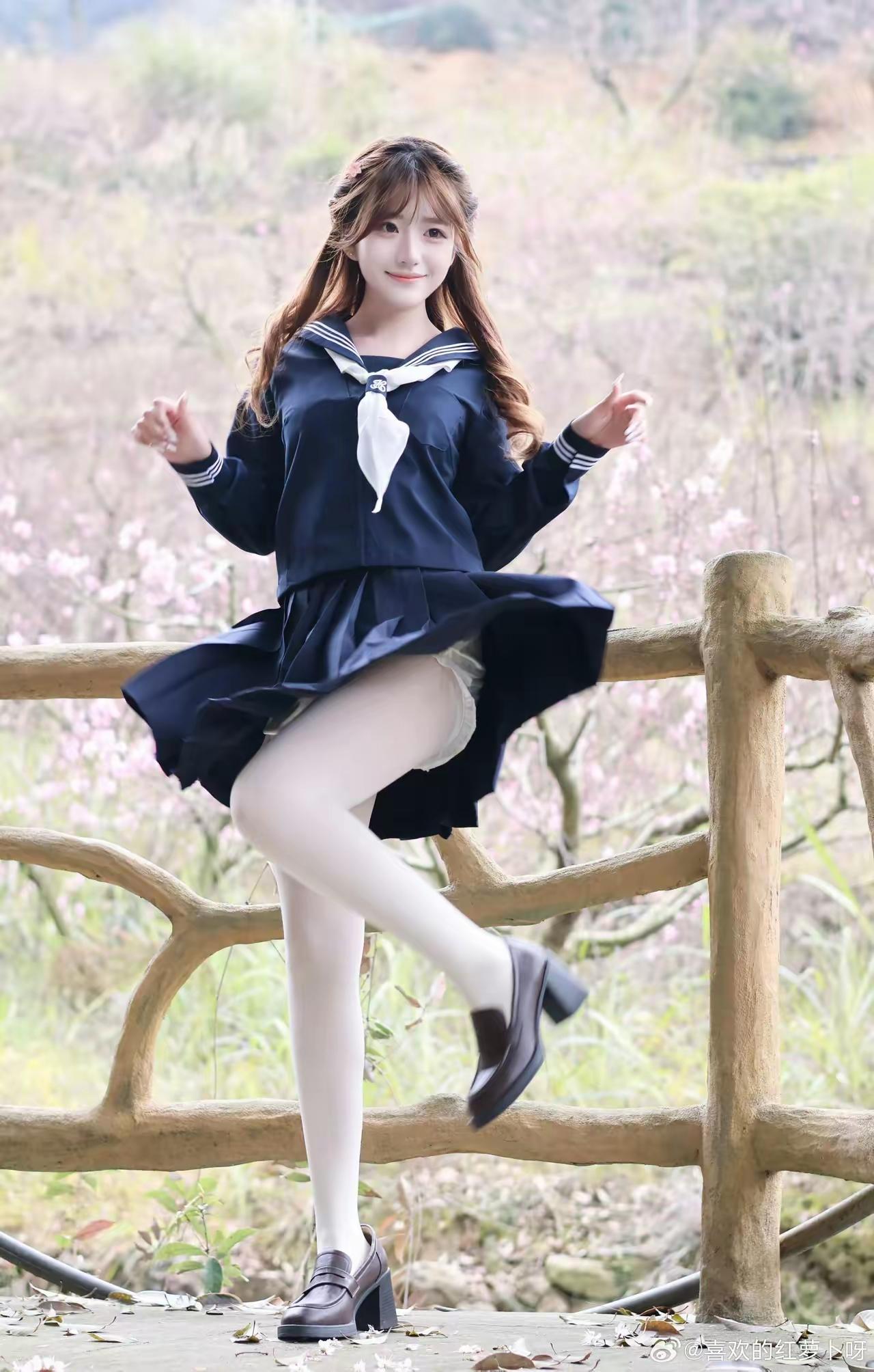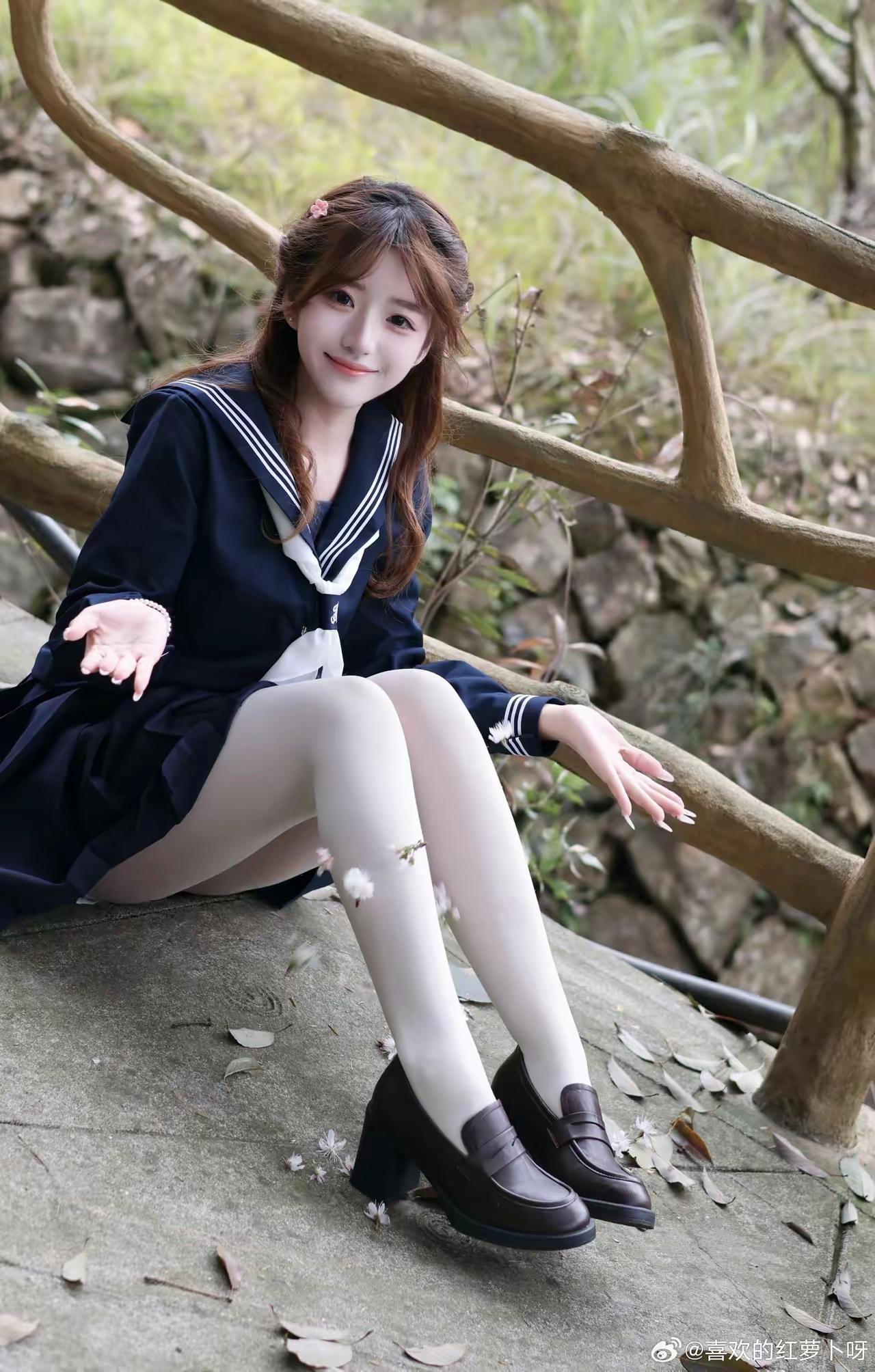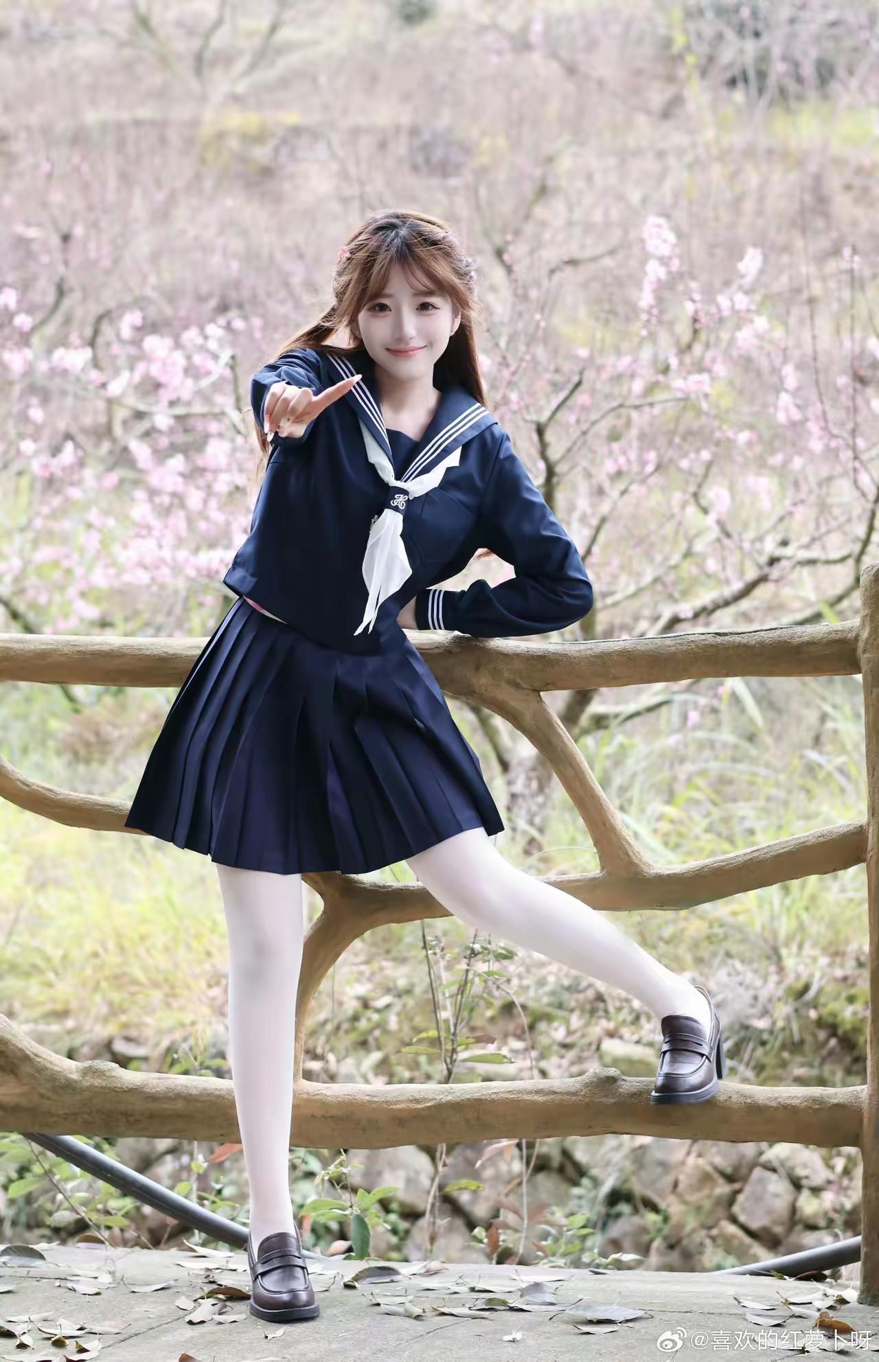 樱花树下,少女微笑,青春洋溢!🌸😊