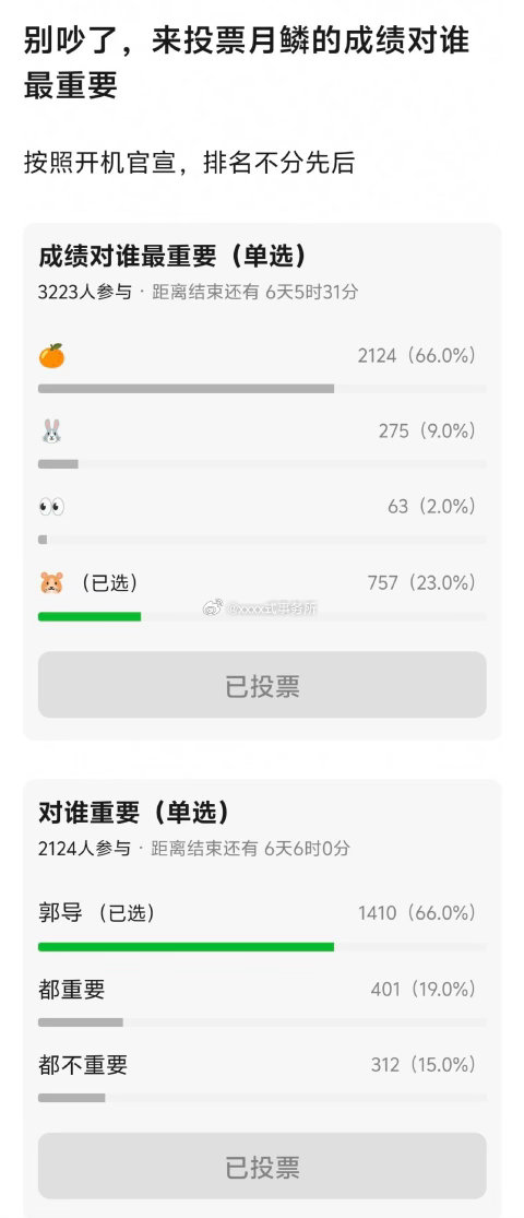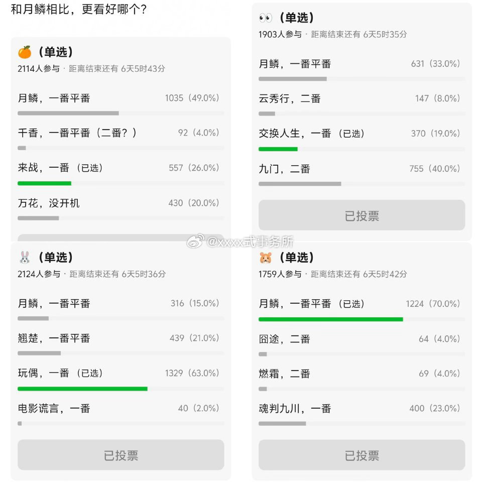 tg:月鳞绮纪对谁来说最重要的千人投票来了看tp好像是小四>田嘉瑞>鞠婧祎>曾舜