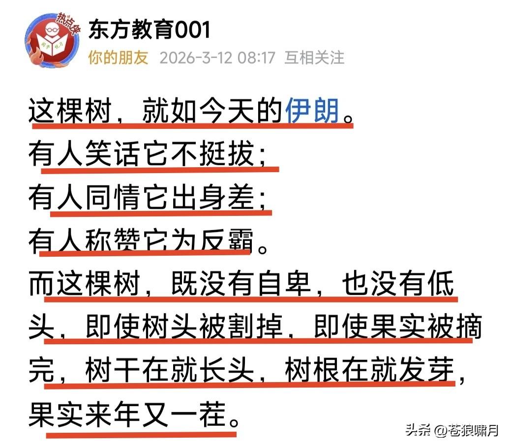 网友把这棵弯树比伊朗,还赞誉有加:有人笑话它不挺拔,有人同情它出身差,有人称赞它是反霸! 它既没自卑,也没低头,即使树头被砍掉,果实被摘光,只要树干在,就能发新芽,果实来年又一茬! 其实何止伊朗?委内瑞拉与古巴不也这样吗?但那块大石头是谁呢?是美帝国主义?还是瑞古伊人民? 回望历史,美国曾是三国亲密伙伴! 像这棵树旁底下巨石一样,为其输送养分,为其挡风遮雨,让其茁壮成长枝繁叶茂树荫乘凉硕果满树! 谁知道古巴的“卡氏革命”,把6000家美企全部没收!伊朗的“霍氏革命”,把开放的巴拉维时代断送!委内瑞拉“查氏革命”,把私企收归国有,也让富得流油的国家变成穷光蛋! 请看这棵树,根部扎于巨石下,那么粗壮浑实,为什么逐渐变细,弯腰躬脊,树头还被斩断?举伊朗为例,它脱鹰亲鹅,为鹅不惜代价,扶持“哈真胡”反政府武装,被连累瘦了吧? 假设“委古伊”三国,不发生历史变故,按照曾经的“开放之路”走下来,专注于国泰民安,努力发展经济,提高人民生活,会有近来的事情吗? 浪子回头金不换!病树前头万木春!但愿人民能觉醒,三国脱胎换新颜。为国泰民安,跨越天堑变通途,走向繁荣发展之路,乃人民之福矣! …………