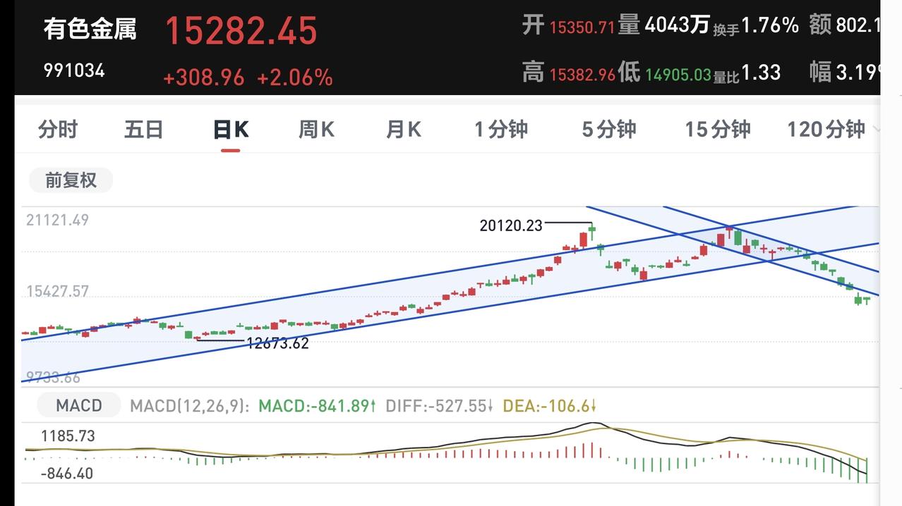 基金:有色金属板块应该怎么办 今天有色金属大涨,现在盘中估值上涨了2.64%,持有人数在所有板块当中排名第32位,有色金属板块的基金见下面的截图二。 有色金属板块日线级别下跌跌破上涨通道下轨线以后连续下跌,形成了一个新的短期下跌通道,最近又跌破了这个短期下跌通道的下轨线,进入了加速下跌状态,今天的上涨并没有能够重新回到原来的下跌通道内,今天的上涨并没有能够改变日线级别短期的下跌趋势,想进场的人需要耐心等待。 有色金属板块周线级别处于上涨通道内,最近几周是连续下跌,本周的下跌来到了这个上涨通道下轨线附近,近期观察会不会有效破位这个上涨通道的下轨线,如果实现了有效破位,长线持有的人需要注意风险。 有色金属板块日线级别处于短期下跌趋势中,想进场的人需要耐心等待。日线级别下跌趋势的改变,只有改变了日线级别的下跌趋势,才可以考虑要不要进场,周线级别处于破位的边缘,长线持有的人需要注意会不会有效破位周线级别的上涨趋势。 有色金属板块很多人已经被套,但被套的都是那些追高的人,如果你没有追高买进,被套的人当中肯定不会有你,不仅是有色金属容易追高被套,所有板块的追涨都会有被套的风险,热闹的地方不去,人多的地方不去,热闹的时候考虑要不要卖,这就是卖在人声鼎沸时,当某个板块没有多少人关注的时候,倒是你需要重点观察的,这就是买在无人问津处。 花1秒钟点赞,花30秒钟评论,就是对我最大的支持,谢谢大家的支持。