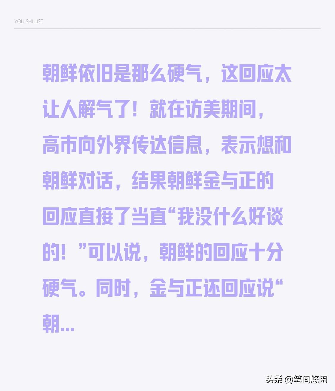 朝鲜依旧是那么硬气,这回应太让人解气了! 就在访美期间,高市向外界传达信息,表示想和朝鲜对话,结果朝鲜金与正的回应直接了当直“我没什么好谈的!” 可以说,朝鲜的回应十分硬气。同时,金与正还回应说“朝日领导人会晤,不是你日本单方面决心和意愿就能实现的!” 可以说,面对日本最近的军事扩张动作,朝鲜是很警惕的,并且也是原则十分明确的,对于没憋好事的日本,朝鲜根本不想搭理。