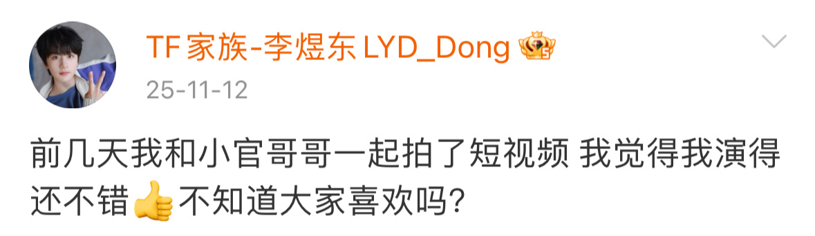 去翻东东的过往微博发现,最近这个高需求宝宝问大家要夸夸的频率简直直线上升!之前只会时不时过一段时间暗戳戳的借文案跟大家互动,现在基本每两条就要问大家怎么样,好不好看,喜不喜欢…好像一只傲娇的家养小猫啊🐱
