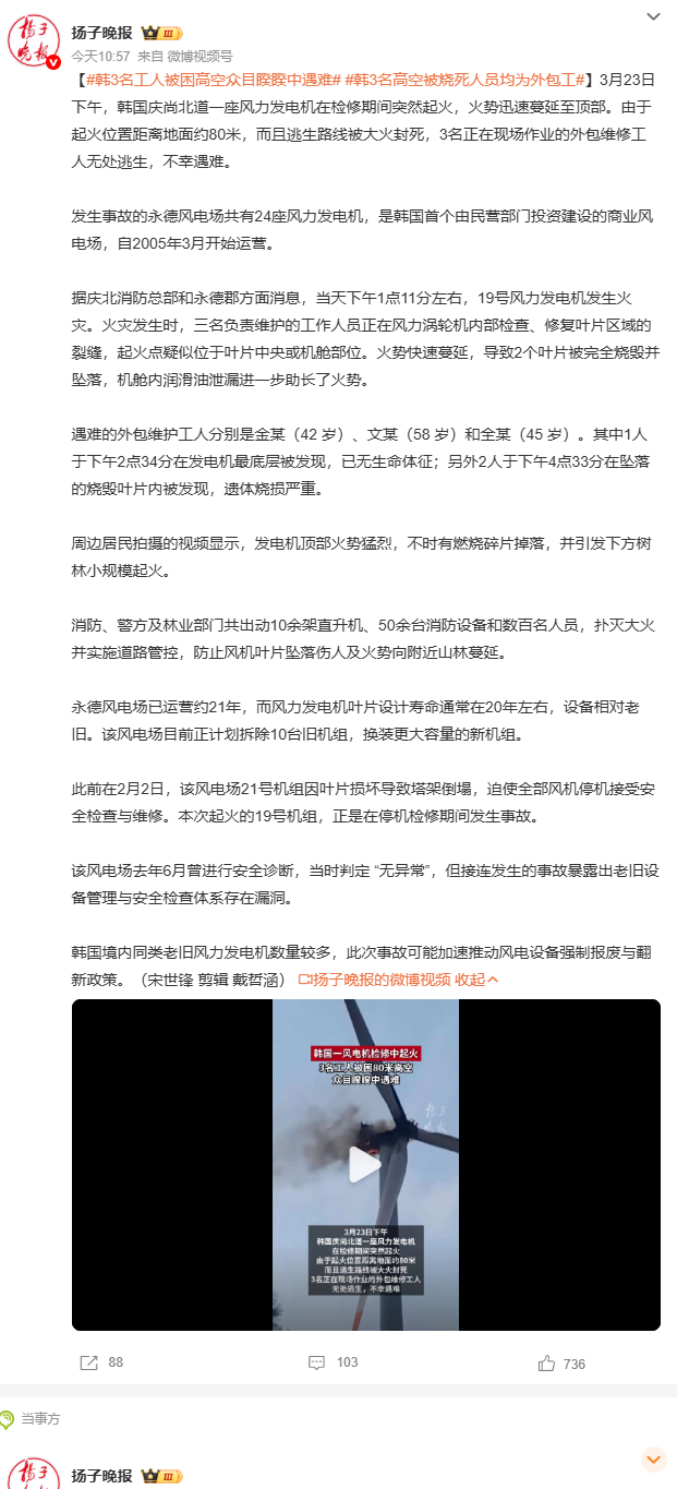 韩3名高空被烧死人员均为外包工韩国风电事故背后,外籍劳工生存困境引关注。语言不通