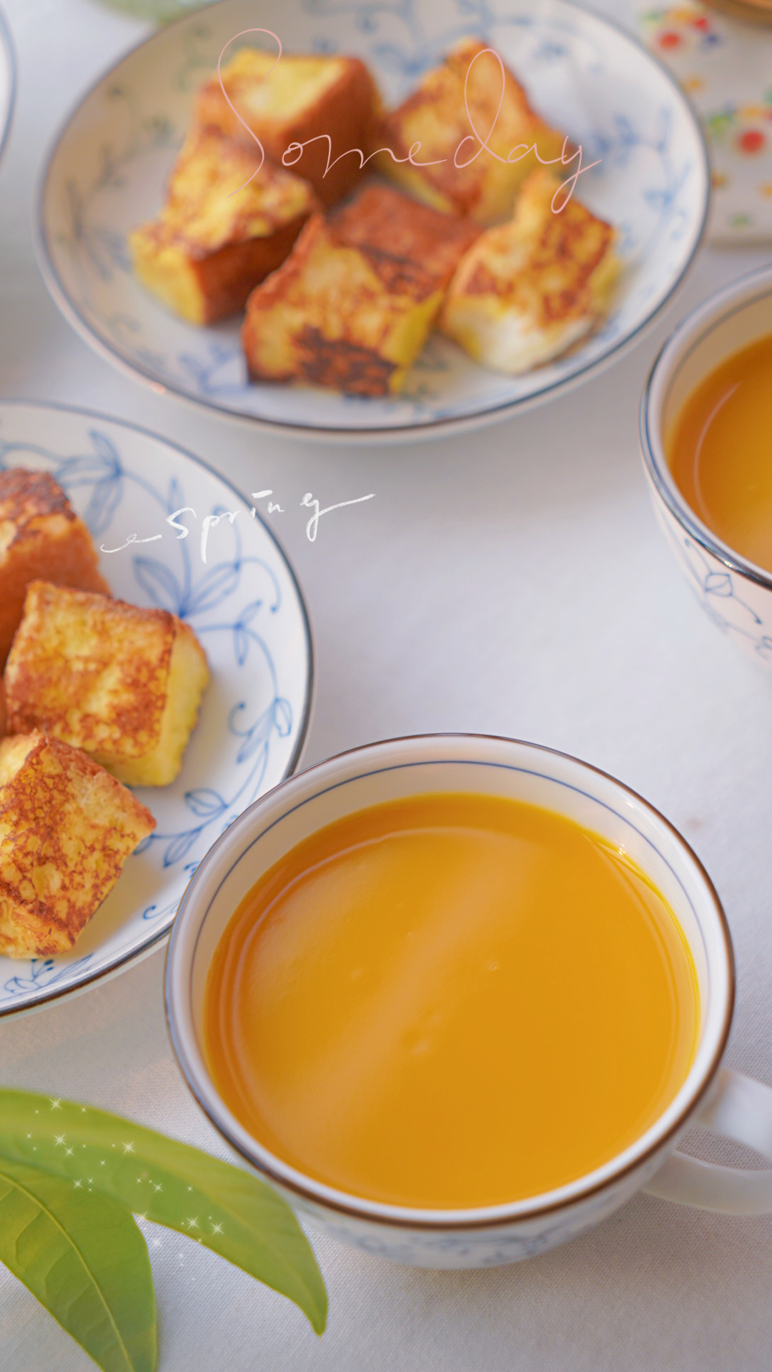 1. 吐司切小块,浸泡在蛋液(鸡蛋+牛奶+少许糖)中。