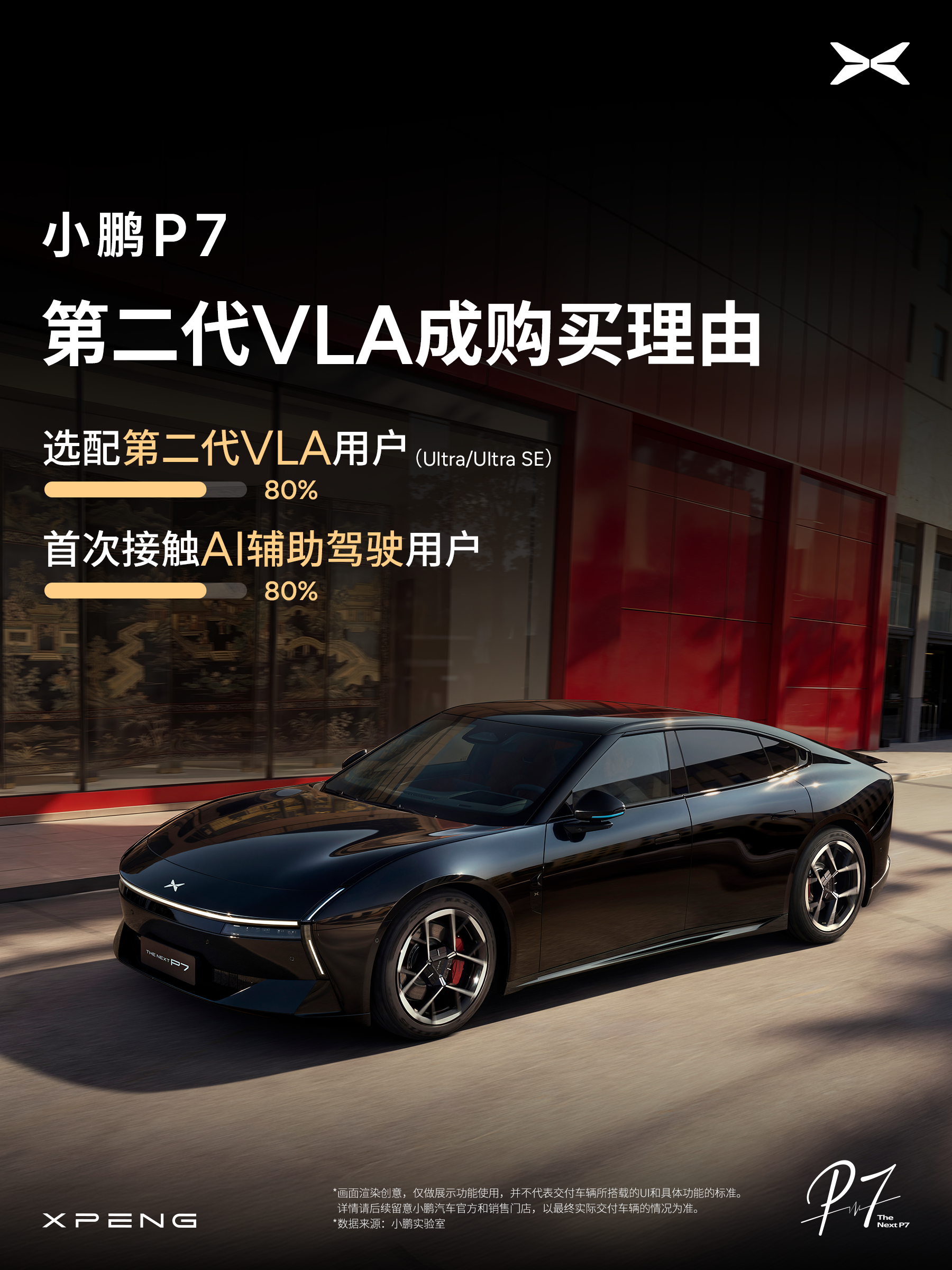 小鹏P7试驾量翻倍超8成小鹏P7用户为第二代VLA买单自从小鹏第二代VLA正式发布,国民智驾热度持续引爆!开启门店试驾后,当周试驾环比提升超 100%,新版型首周试驾量稳居高位,刷新周末两天试驾量纪录,市场热情肉眼可见。其中Ultra系列热销势头强劲,销量占比突破 80%,Ultra智能升级包选装率超70%,用户用行动为高阶智驾实力买单。小鹏P7的颜值同样出圈,超 30% 客户选择暗夜骑士套装,其中超7成用户偏爱引力红内饰,成为潮流出行之选。目前第二代 VLA 已登陆全国门店,欢迎到店亲测硬核智驾实力。