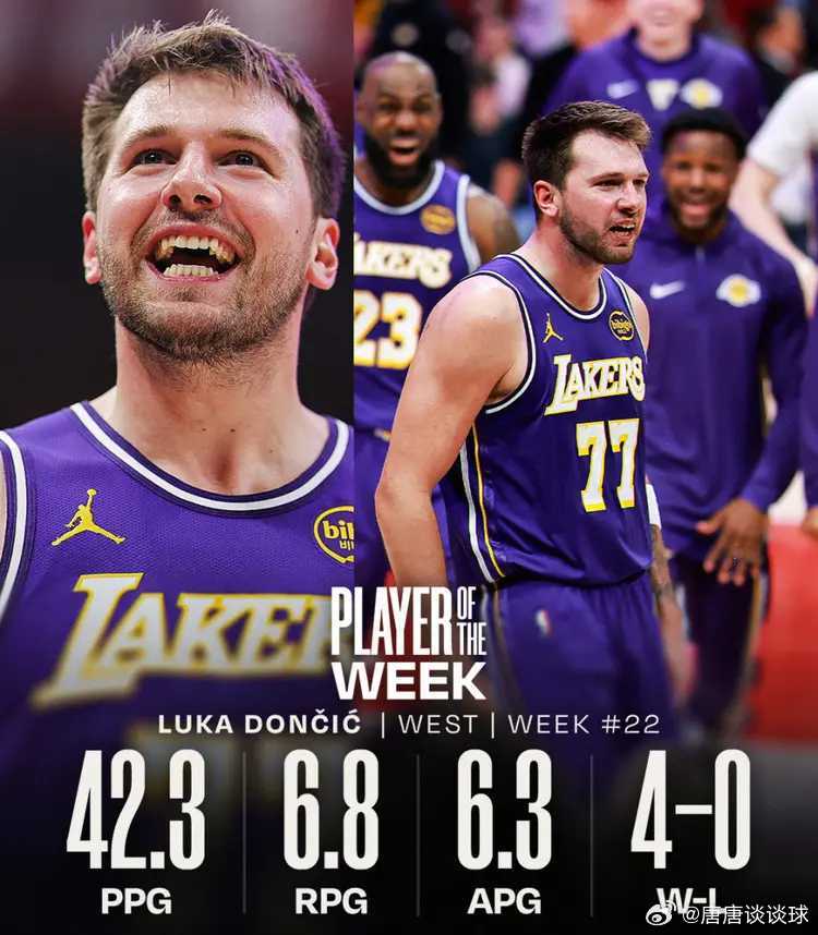 3月24日NBA官方公布了第22周的周最佳球员,湖人球星卢卡-东契奇当选西部周最