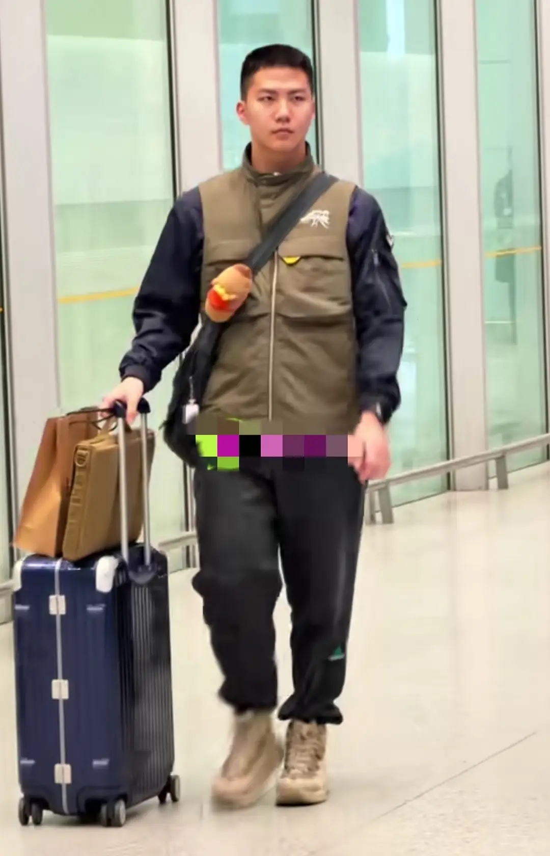 57岁胡军和17岁康康现身机场!父子俩一样高,康康眼神气质像军人!