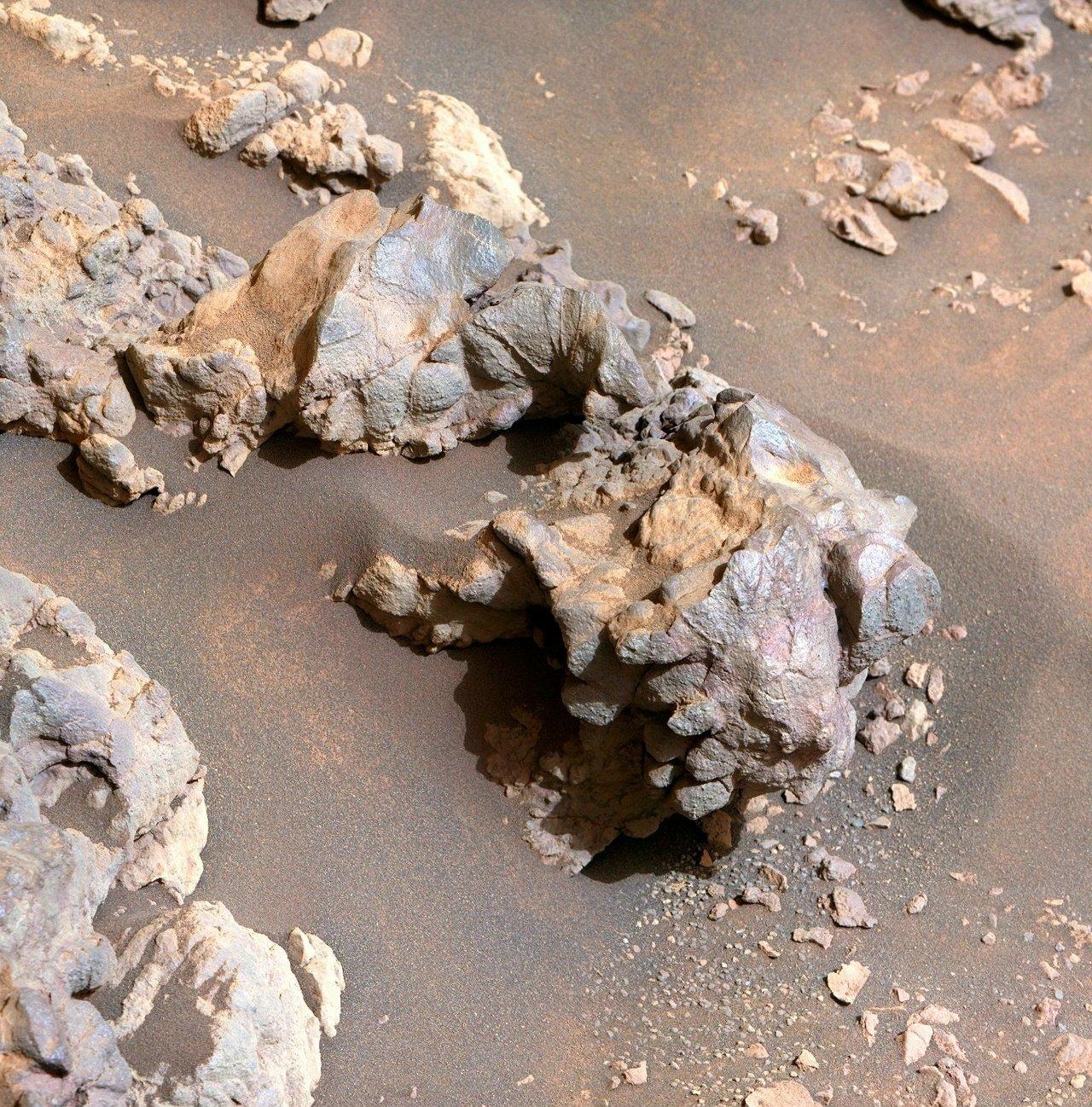 这张照片是人类探测器在火星表面拍摄的岩石... 这些岩石棱角分明、表面粗糙,呈现出紫灰、棕褐与金属光泽的混合色调,是火星特有的铁氧化物(如赤铁矿) 在干燥、低氧环境下长期风化的结果。部分岩石的层理和胶结结构,暗示它们可能是古老的沉积岩或火山碎屑岩,记录着火星远古的地质活动。 这些看似普通的岩石,是解开火星生命之谜的关键: 它们可能曾在水环境中形成,是寻找古代微生物痕迹的核心目标。 岩石中的矿物成分能揭示火星大气、气候的演变过程。