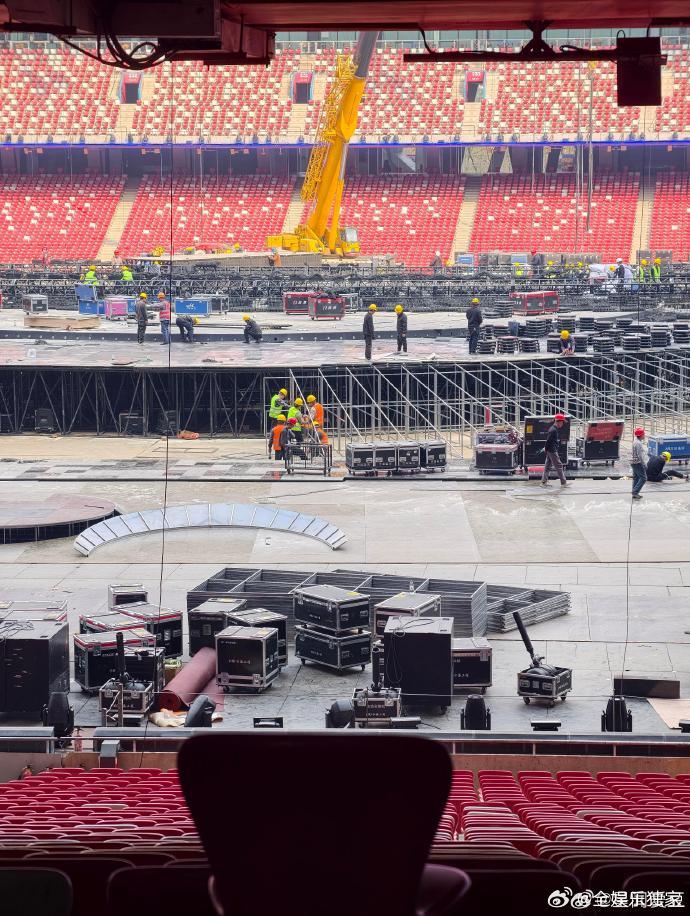 张杰在鸟巢搞上装修了 路过鸟巢以为在大改造,结果是张杰在为演唱会用心布置,这规模