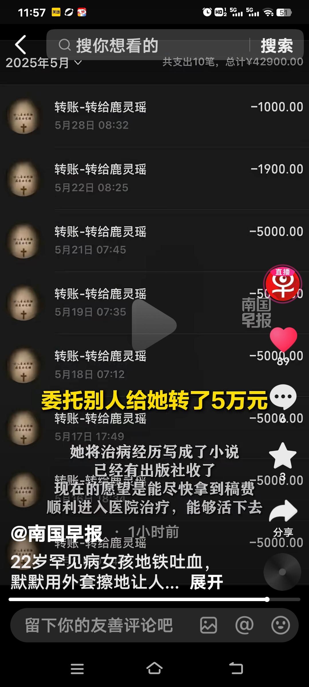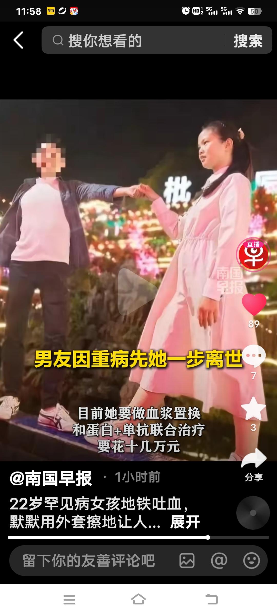 22岁女孩胡心瑶在重庆地铁1号线上吐血后,默默用外套擦干血迹的视频,引发网友关注,很多网友说她是个懂事的女孩,着实令人揪心。她称自己很喜欢这件衣服,却不得不拿它擦血,只因怕别人看了害怕,还怕踩脏了鞋。 2018年,她被确诊患有罕见病ANCA血管炎,后来病情发展成肾衰竭,并发症频繁发作。2025年,她数次收到病危通知书,3月23日再次接到病危通知。 之前她病情严重,两次拒绝男友求婚,没想到男友却先她因重病离世,临终还转了5万助她治病。她受乡亲资助后办了坝坝宴,感恩之余还牵挂着70多岁的年迈父母,不想拖累他们。如今病情恶化,治疗费用需十几万,可因家庭条件不好,实在没办法。她说,自己已将病历写成小说并出版,希望能顺利拿到稿费,进医院治疗,能好好活下去! 即便身体不适,她仍坚持清理血迹。所有病情都由她一人承担,包括那一张张病危通知书,得多么坚强的女孩才能扛下这一切。她真是命苦到了极点! 胡心瑶