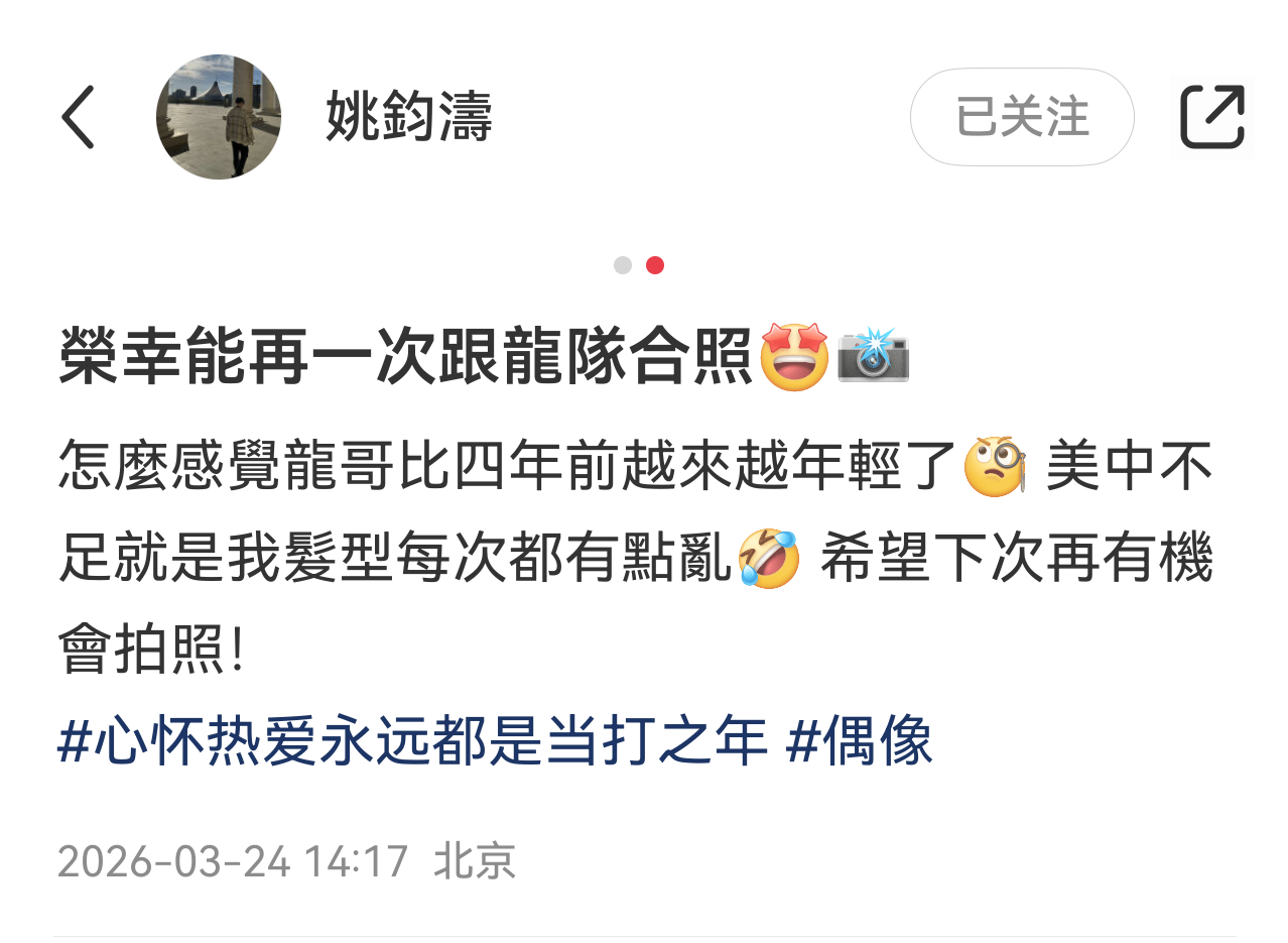 又一个再合影系列龙哥比四年前越来越年轻了