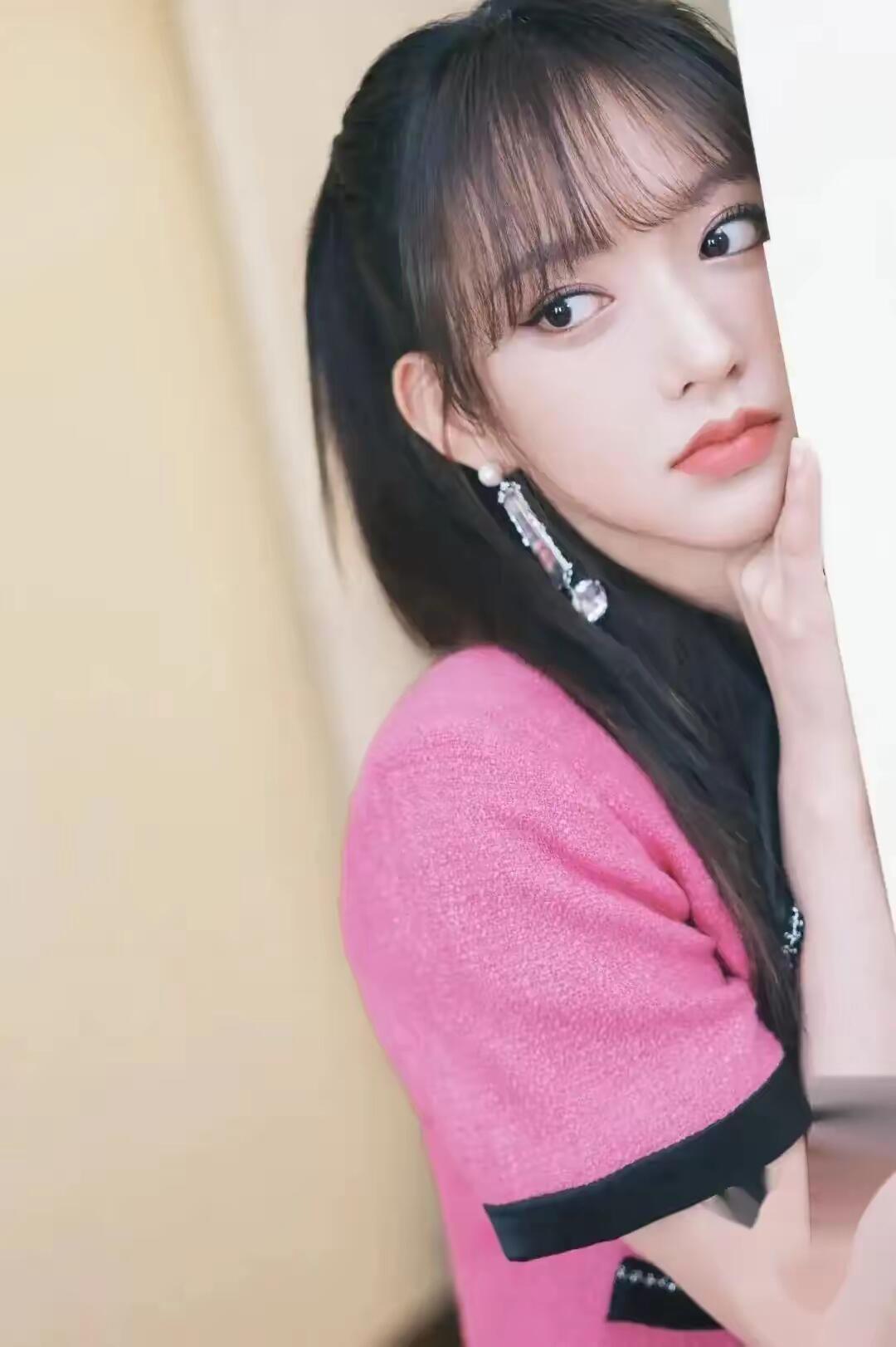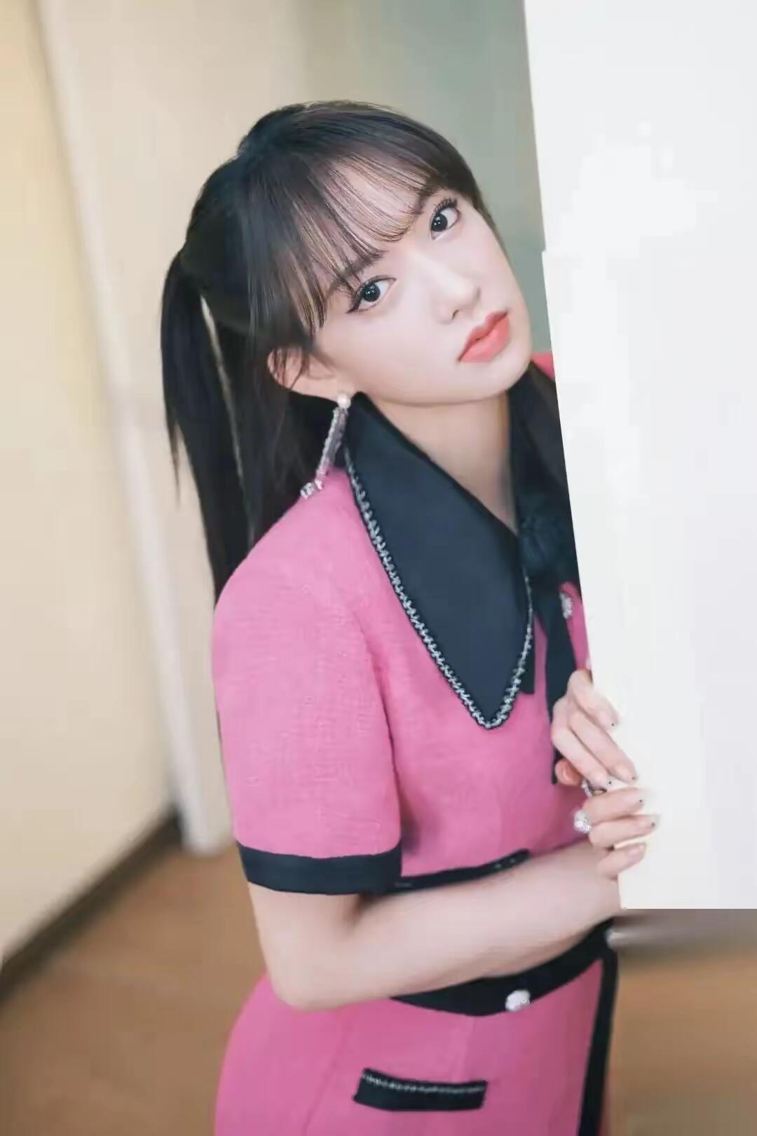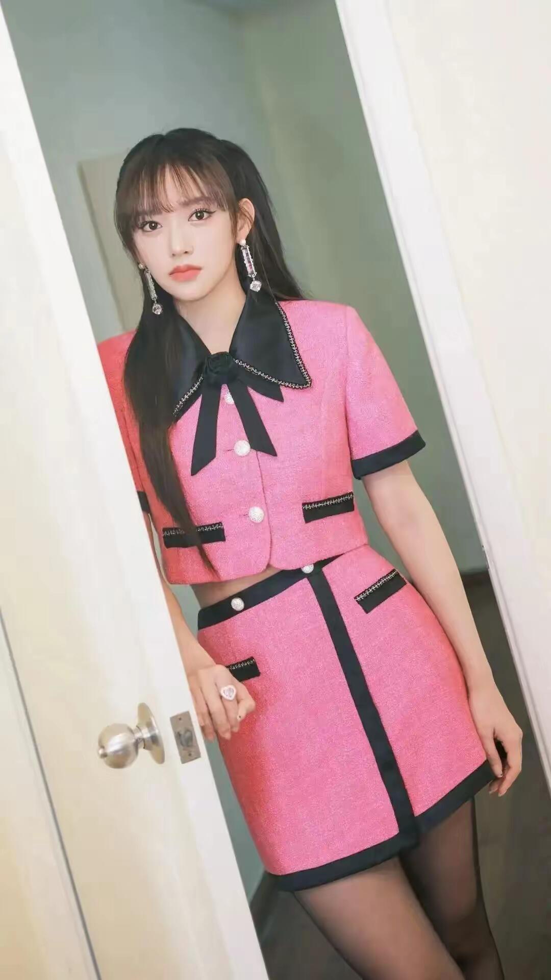 程潇粉色短裙配黑丝,又纯又欲,太美了