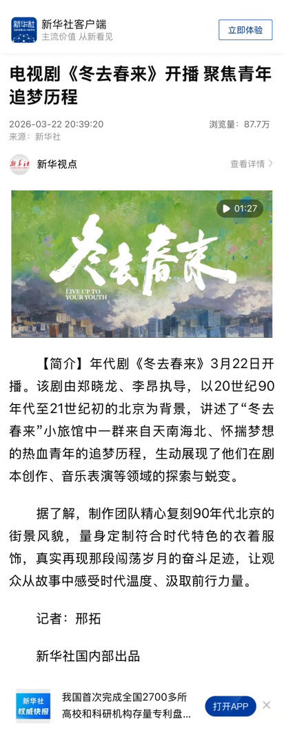 冬去春来收视率超逐玉收视登顶口碑炸裂!《冬去春来》以亮眼数据碾压同档剧集,获权威媒体双认可。剧组耗时三年复刻老北京烟火气,主演演绎北漂青春,书写一代人的奋斗史诗。