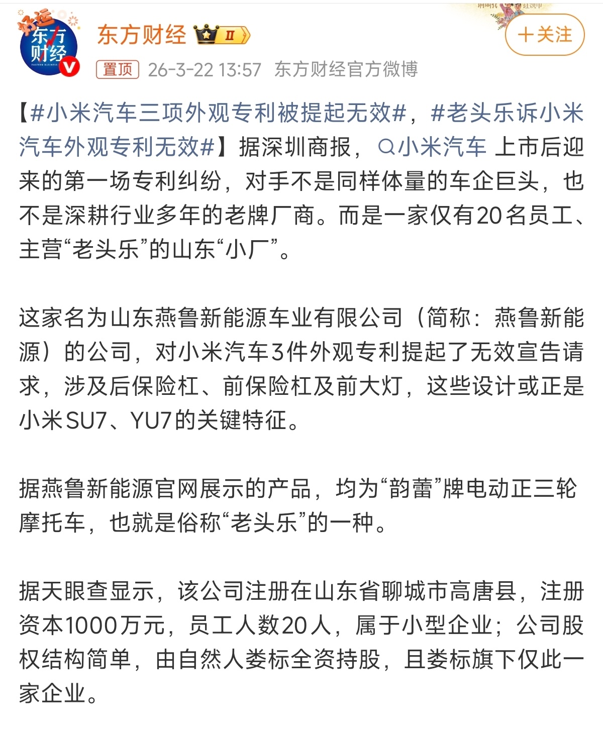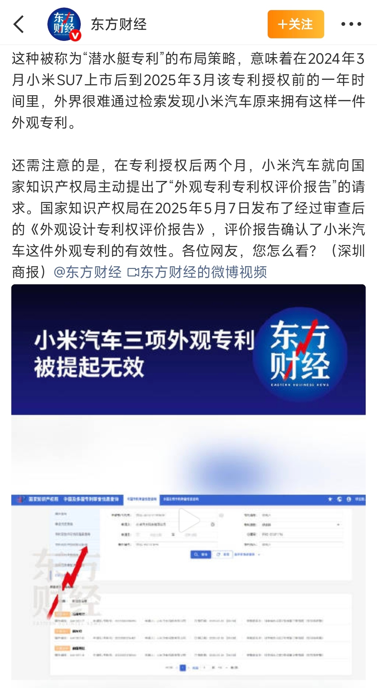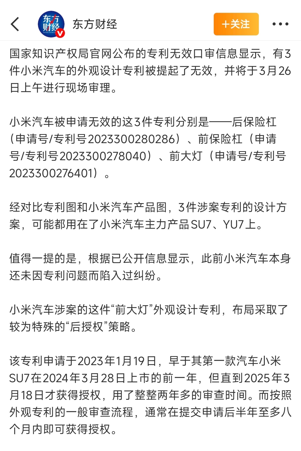 小米汽车的三项外观专利被提起无效,这件事还挺有意思的,看到一些网友的评论更加有意思。