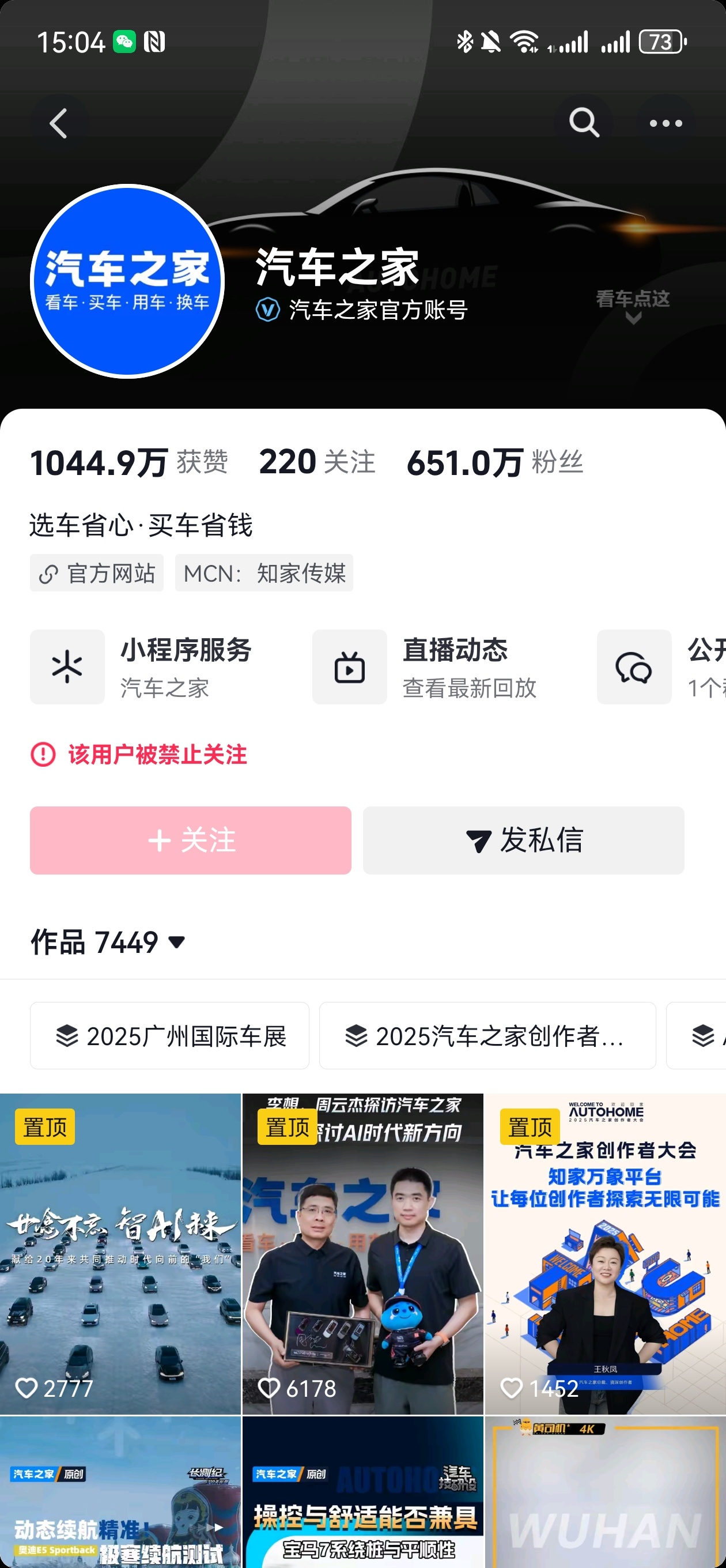 汽车之家多平台账号被禁止关注 微博已经无法关注,而抖音也显示:该用户无法关注!汽