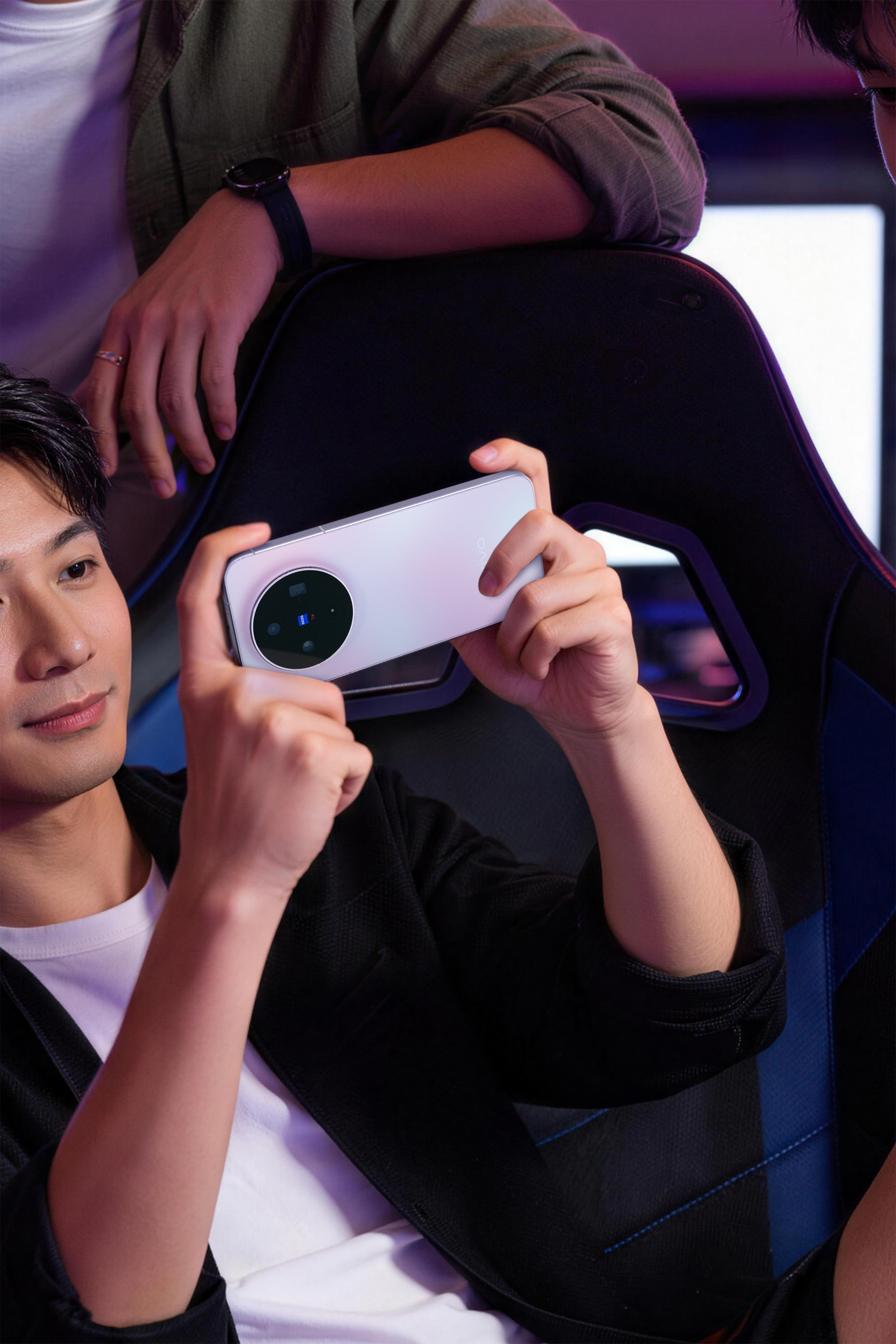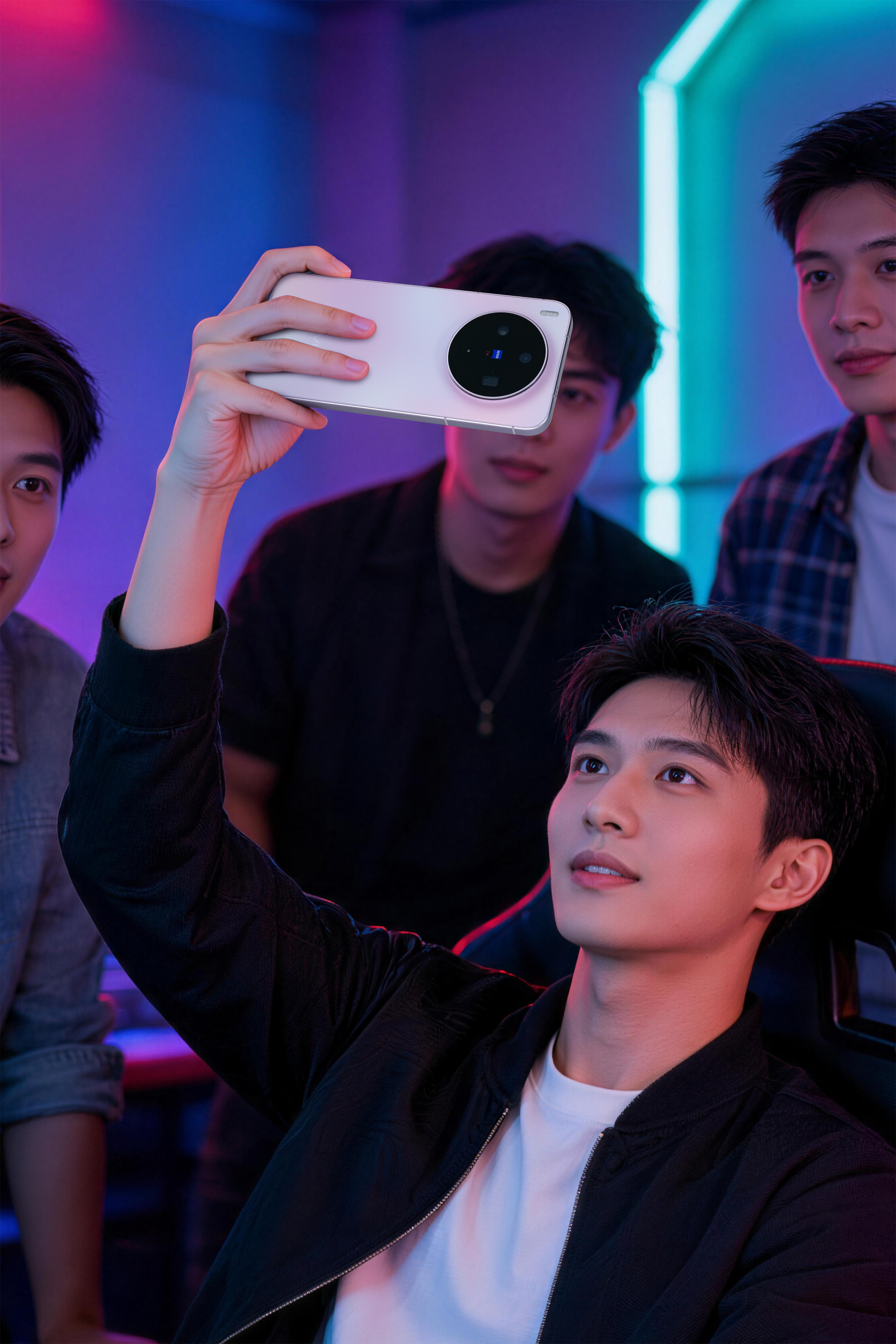 它那个梦核紫的配色还挺有意思,不同角度有不一样的光影,霓虹灯下氛围感拉满,不管是开黑还是聚会自拍都很出挑。还有家族化的蔡司影像模组,辨识度很高,机身也轻薄,拍照打游戏久握都不累手。