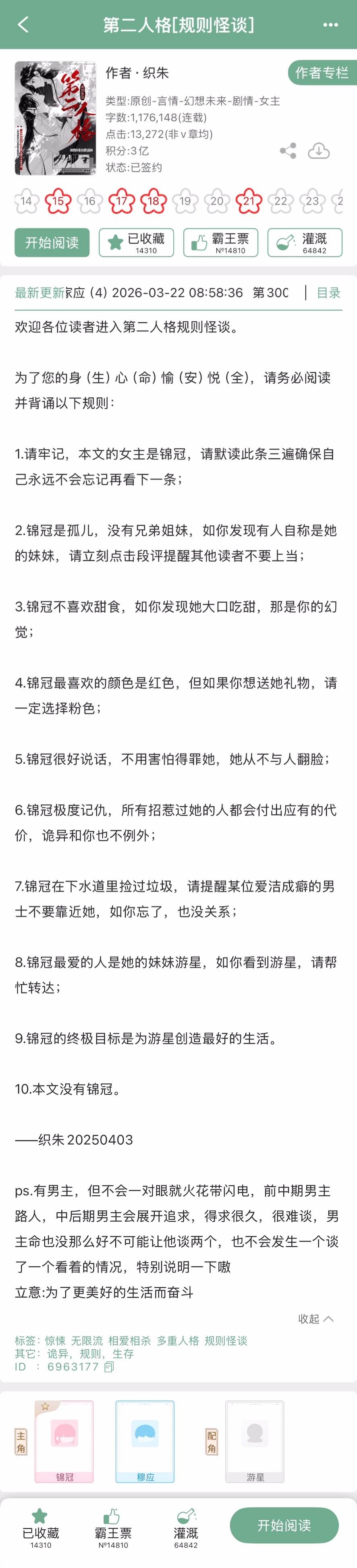 织朱的《第二人格[规则怪谈]》完结啦!无限流➕规则怪谈,有男主~作者写过《生存期