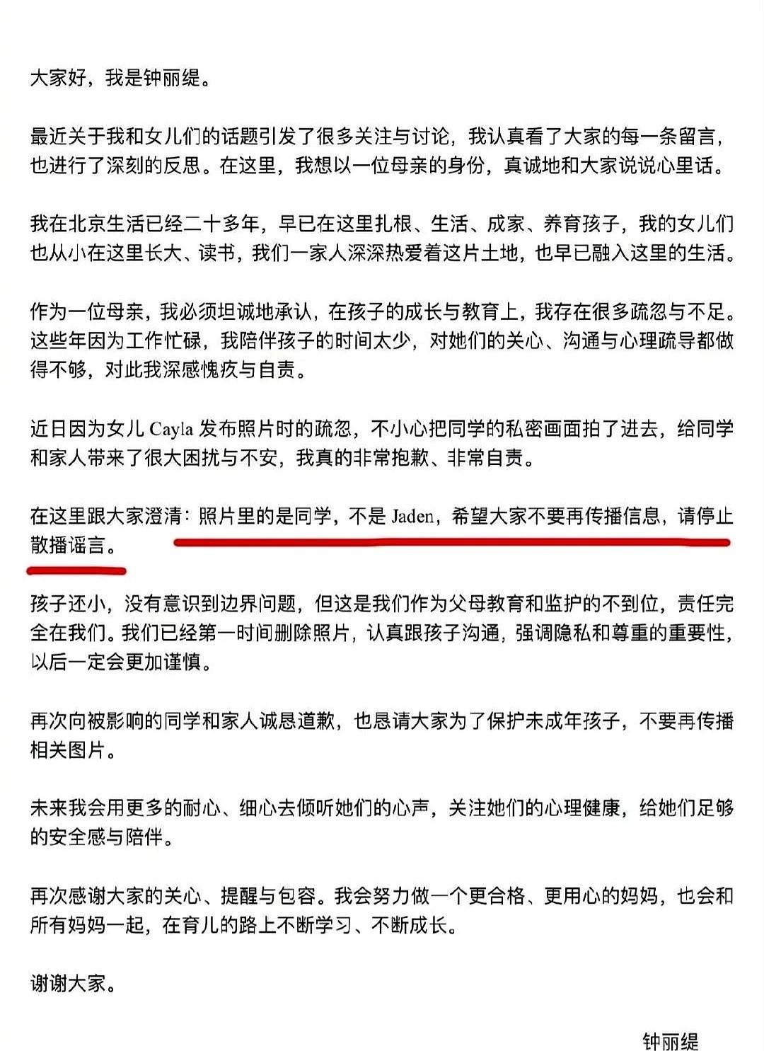 钟丽缇家的小女儿考拉,这回真惹事了。 16岁的考拉发自拍,背景里不小心把同学的私密画面给拍进去了!照片秒删也没用,截图满天飞,网友直接炸锅,说她没边界感。 钟丽缇火速发长文道歉,澄清照片里不是姐姐洁登,是同学。她把责任全揽自己身上,承认工作太忙,陪孩子时间少,教育和关心都没跟上,特别自责。 这事儿还牵扯出姐妹俩点赞的事,内网用“中国新年”,外网就换成“农历新年”,也被网友拎出来说。 现在钟丽缇承诺会多陪孩子,多关心心理健康。这事儿,大家怎么看?