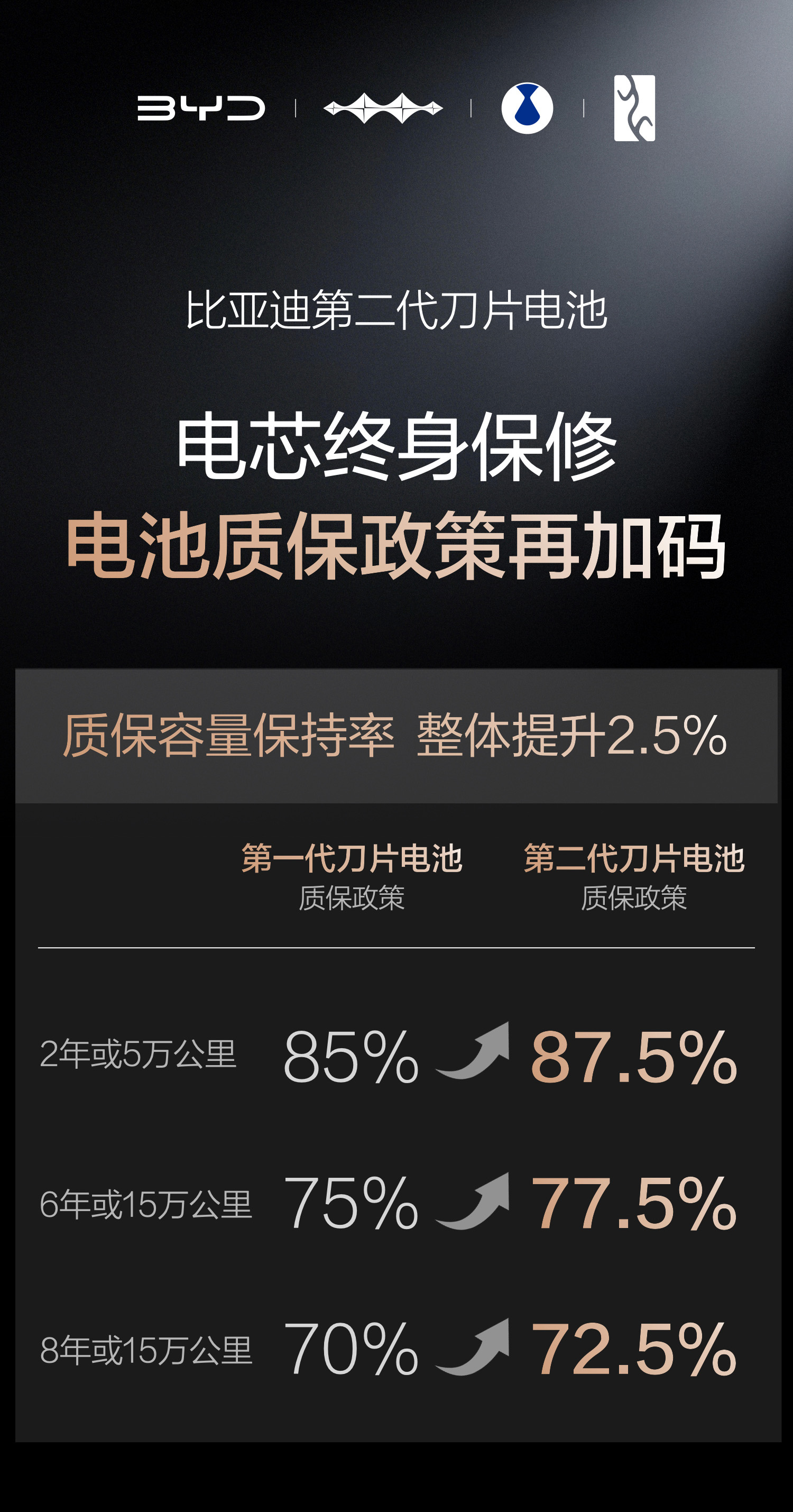 很多人担心电动车快充会伤电池、衰减快,但比亚迪第二代刀片电池,做到了闪充快、寿命长、质保还升级。 它能快充,核心是降低内阻、优化电极结构,让锂离子传输更快,再配合高压快充平台,充电速度大幅提升。同时用全域精准温控,快充时严格控制温度,不让电芯过热,从根源减少电池老化。 再加上材料和界面防护升级,减少锂枝晶、保护电芯内部结构,所以大功率快充也不容易伤电池。 比亚迪还把电池质保容量保持率提升了2.5%,简单说就是:电池衰减更少、质保标准更严、用车更放心。 简单总结:技术控温+低内阻设计+材料升级,让第二代刀片电池真正实现「快充不伤电池,耐用又有保障」。