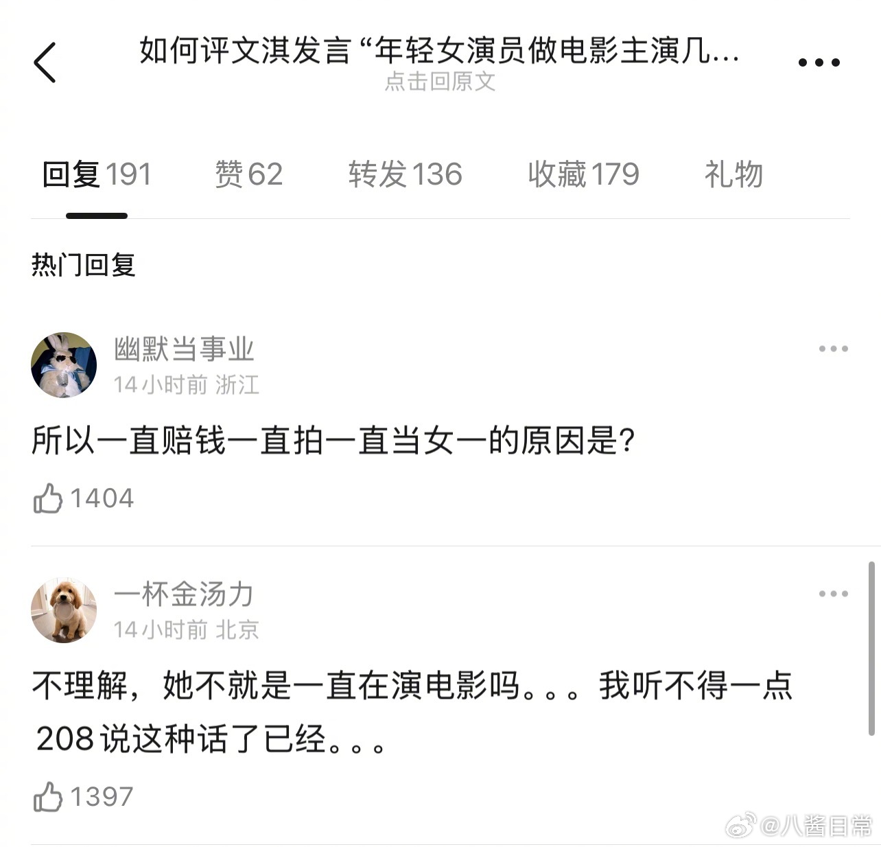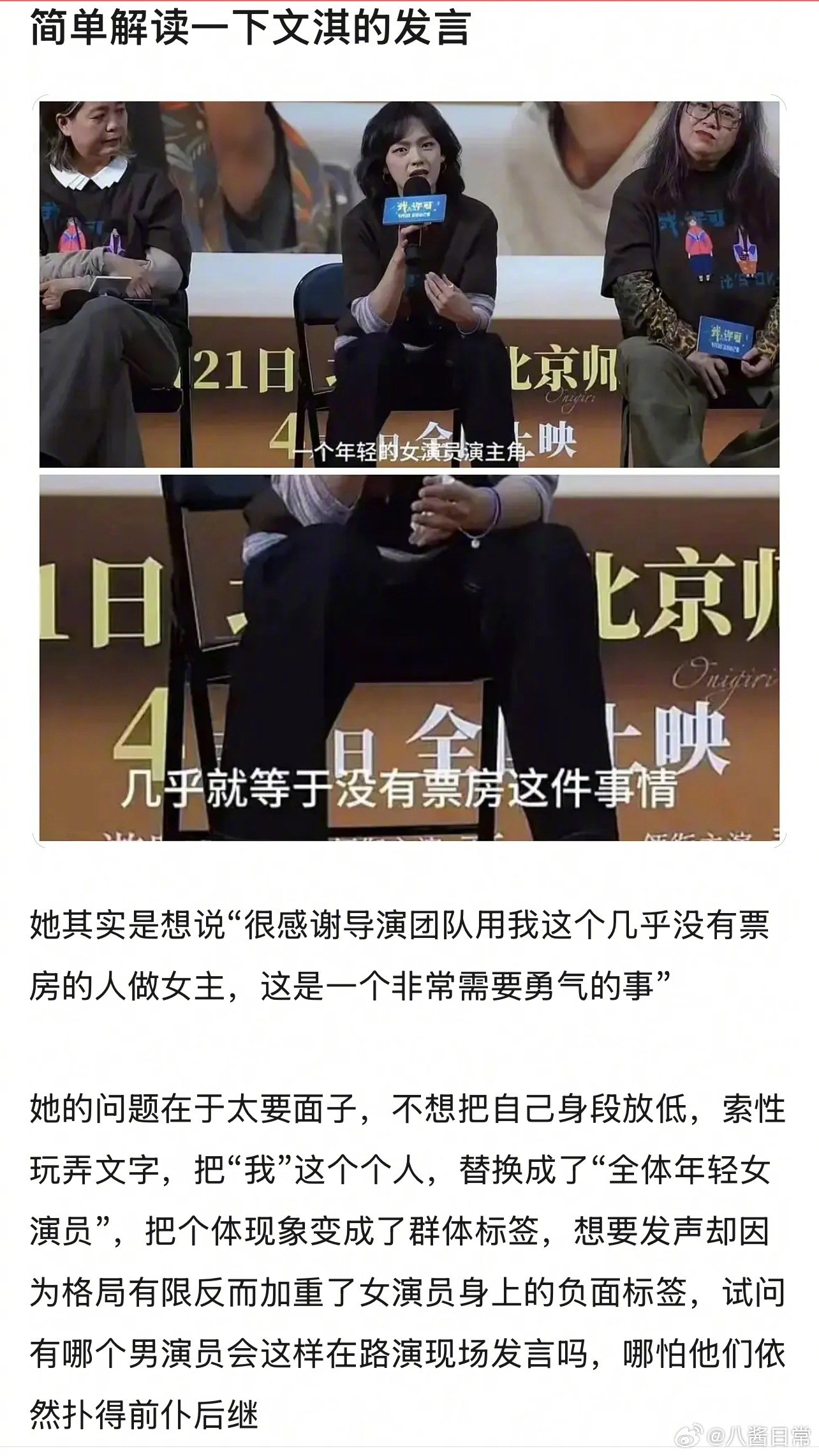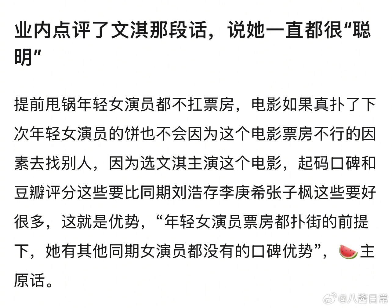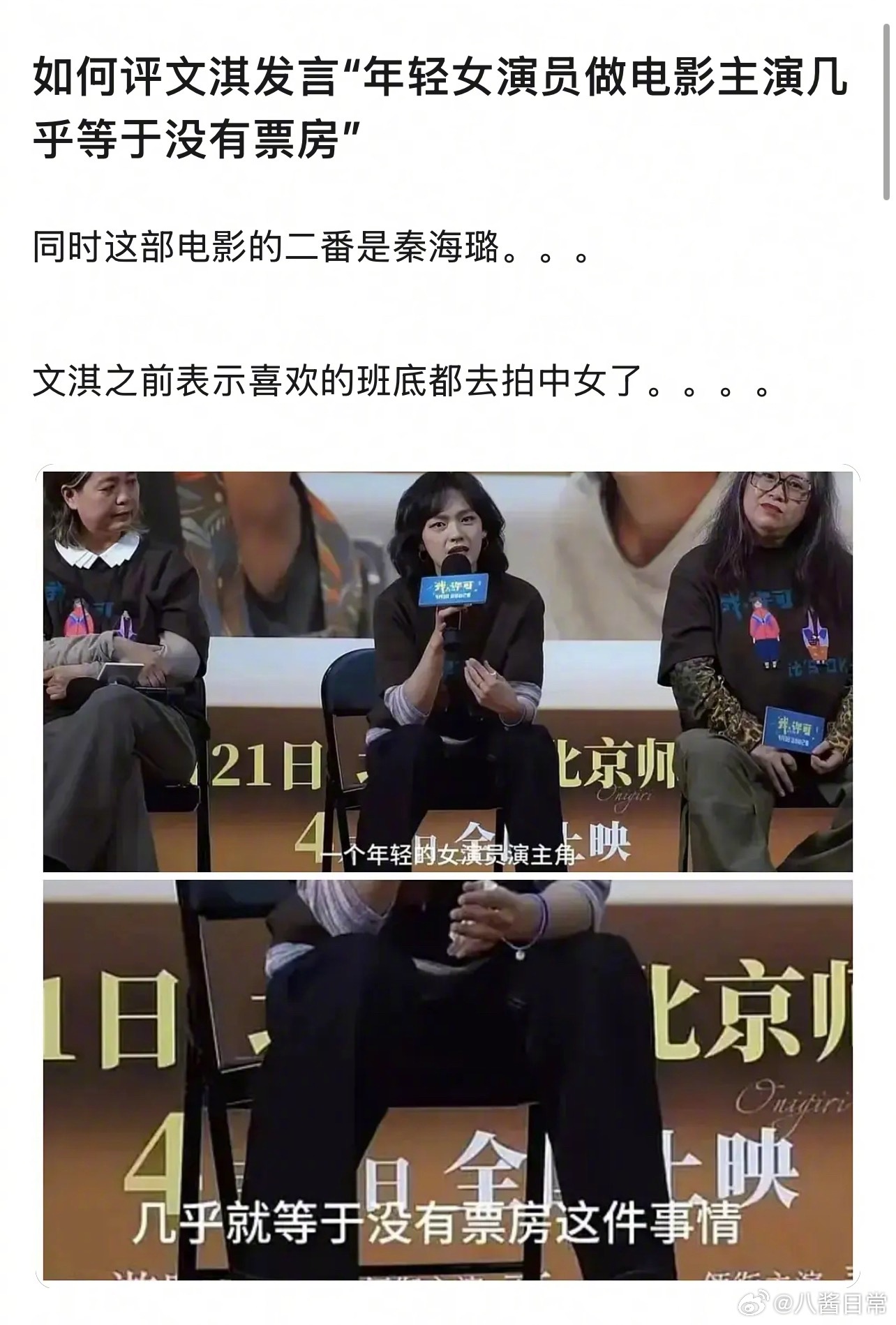 “文淇说年轻女演员做电影主演几乎等于没有票房”这句话被大讨论