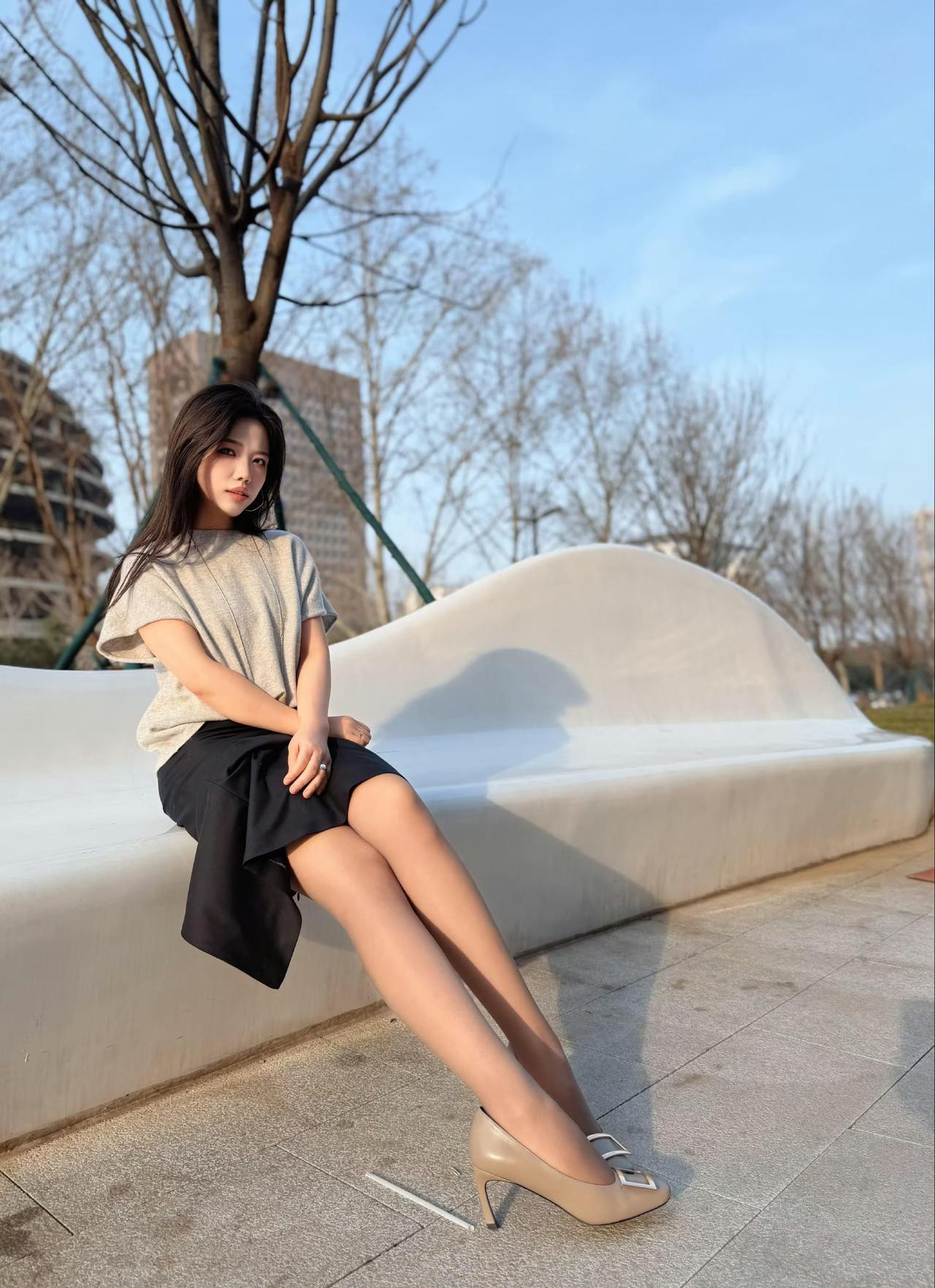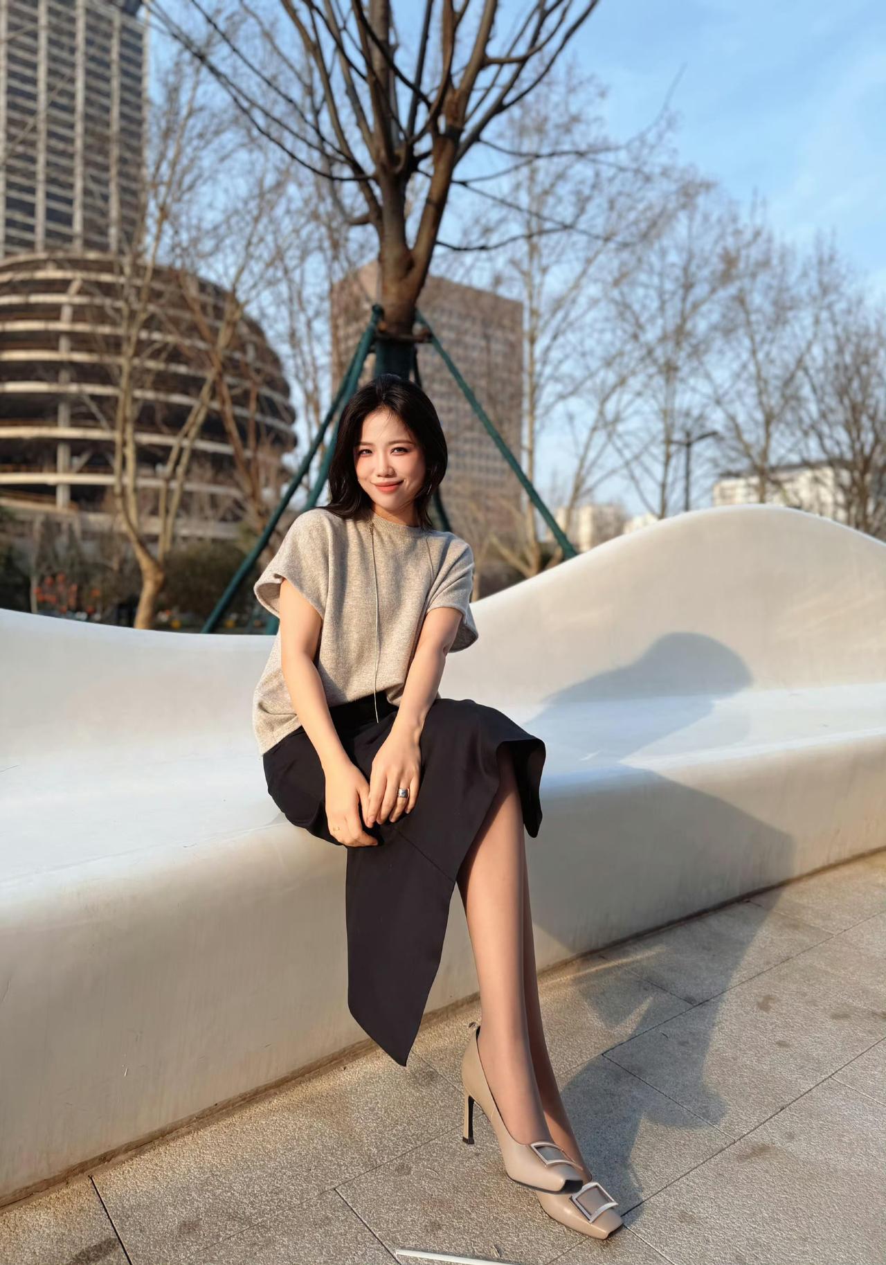 这套是松弛优雅通勤风,核心是浅灰短袖针织+黑长开叉裙的搭配:宽松针织自带松弛感,开叉长裙增加优雅细节,浅肤色袜+拼色单鞋强化精致氛围,休闲又不失气质。灰调针织穿搭 黑裙如何穿出高级感?