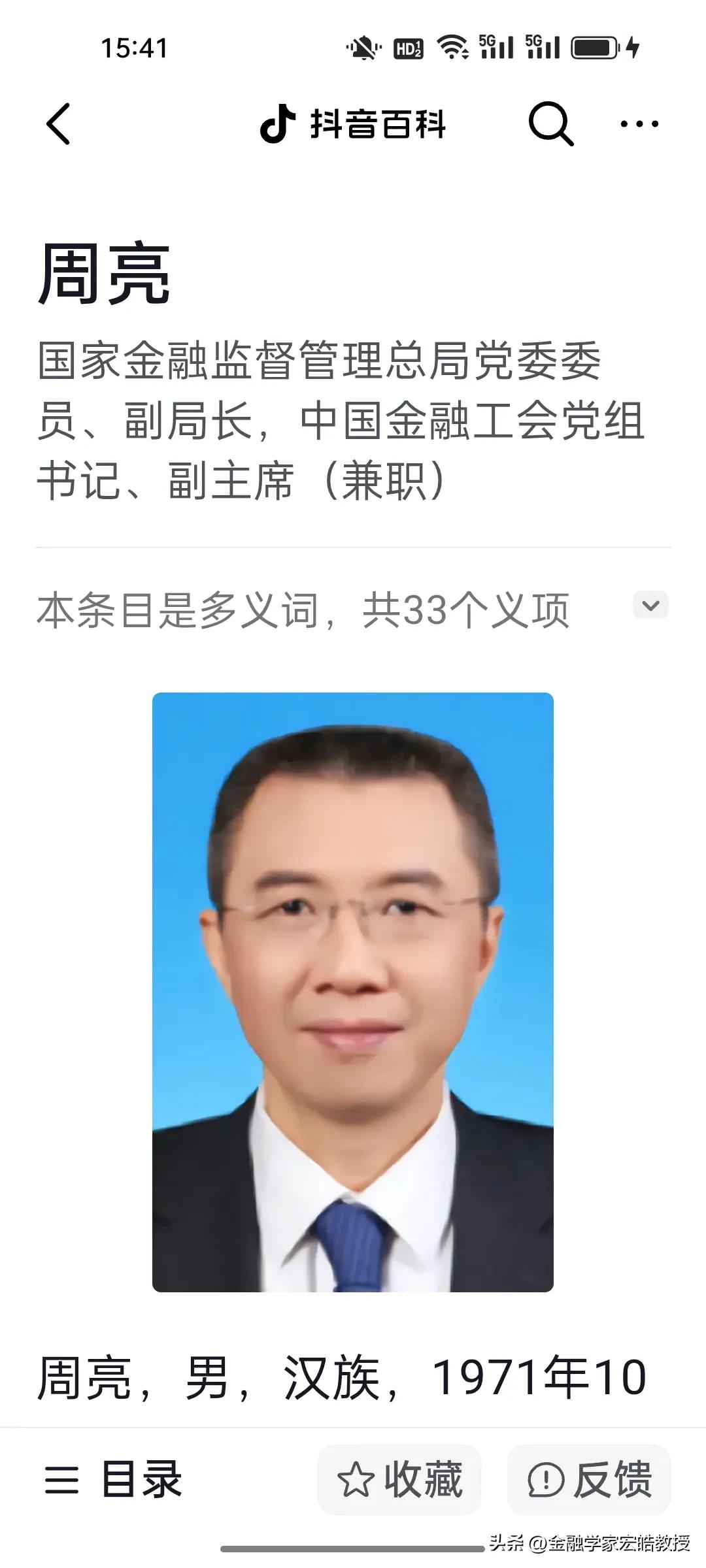 刚刚,金融反腐再添重磅!监管总局副局长周亮被查! 金融反腐无死角,国家金融监督管理总局副局长周亮涉嫌严重违纪违法,正接受审查。他为副部级干部,今年55岁,他的履历涵盖中央纪委等多部门,曾任银保监会副主席。 近期公开露面集中在去年11月香港国际金融峰会,他在此前多次强调金融反腐、严惩权钱交易。可千算万算,就是没有算到自己。此次落马,彰显监管层对金融领域腐败“零容忍”,也为行业敲响从严治吏警钟。