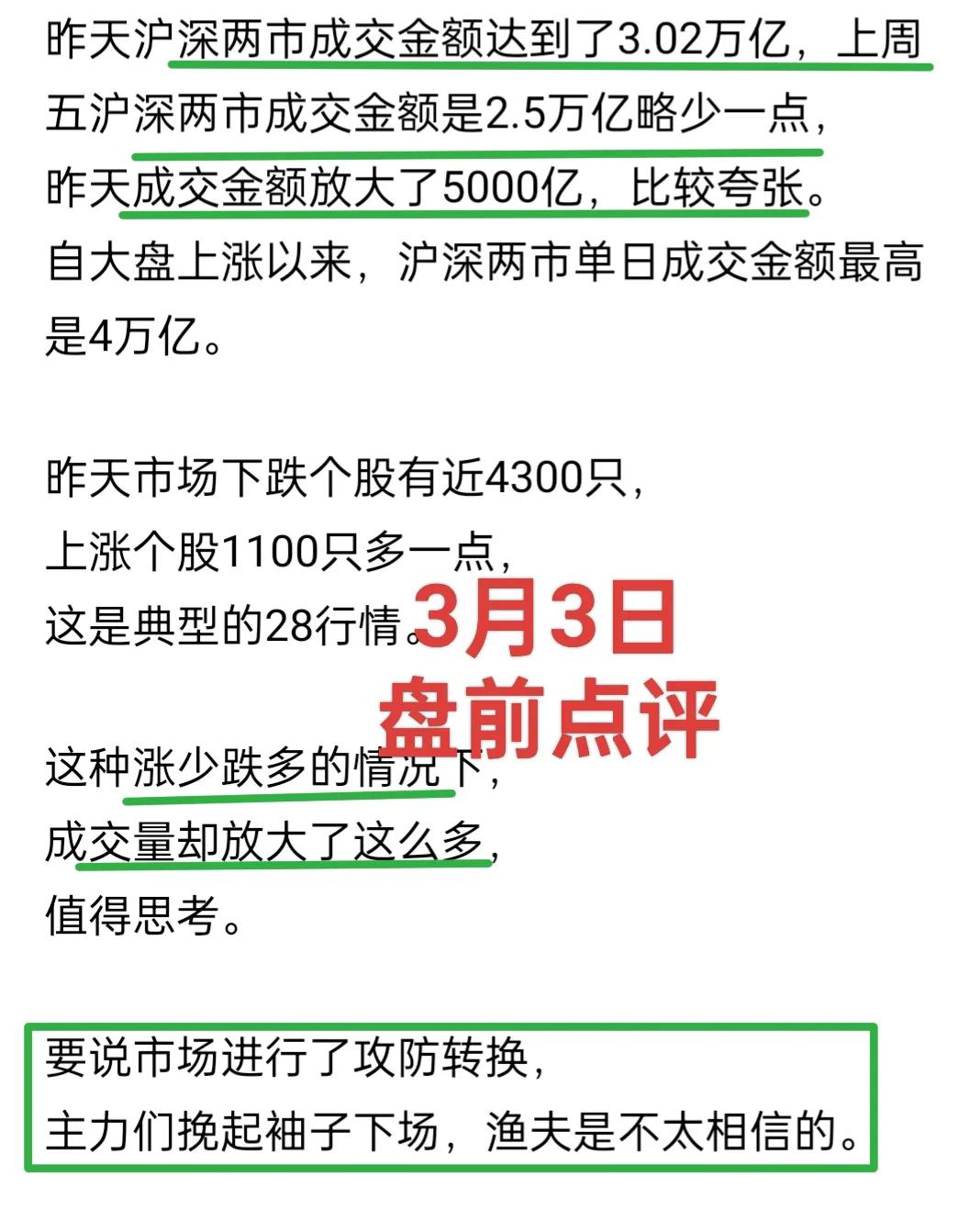 下跌是修复,非牛市终结!中午渔夫说1月5日缺口会回补,3月3日盘前提醒大盘创新高