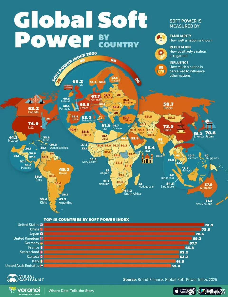 全球软实力排名,中国暂列第二,前十没有印度 。三哥下回赢回来。
