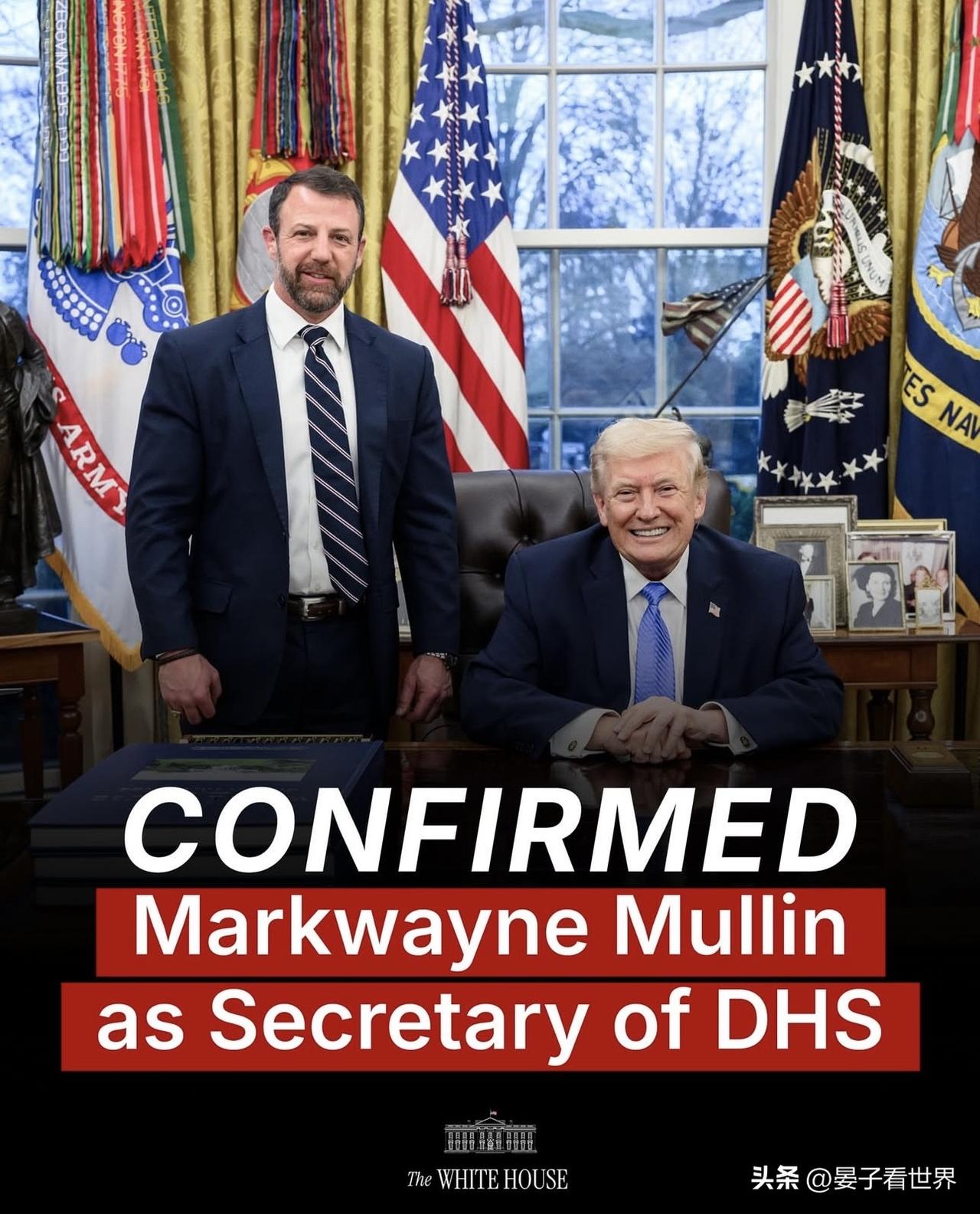 馬克韋恩•穆林被確定為美國國土安全部第九任部長。 Markwayne Mullin has been confirmed as the ninth Secretary of Homeland Security.