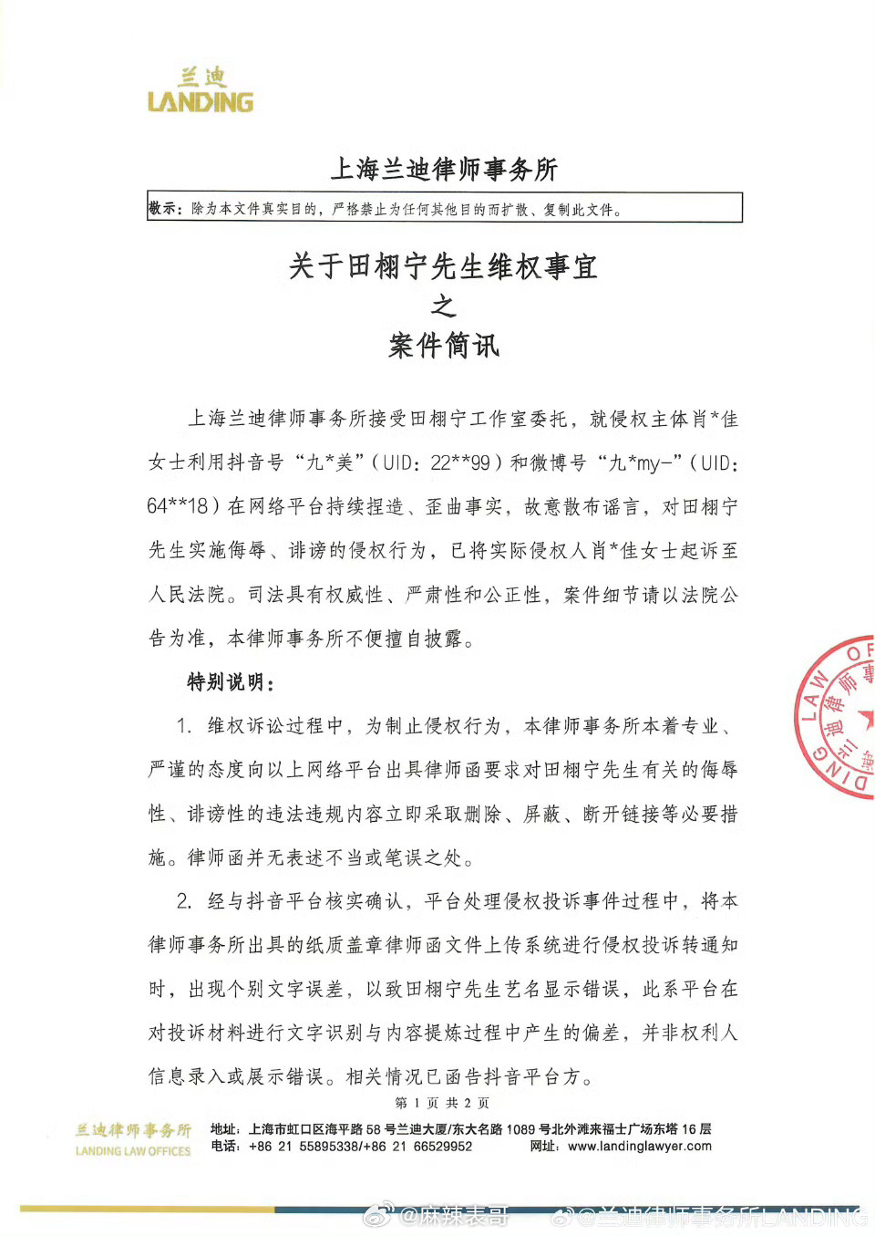 刚刚,田栩宁这边委托律师事务所发声明,说是纸质文件上传的时候出现了文字误差。