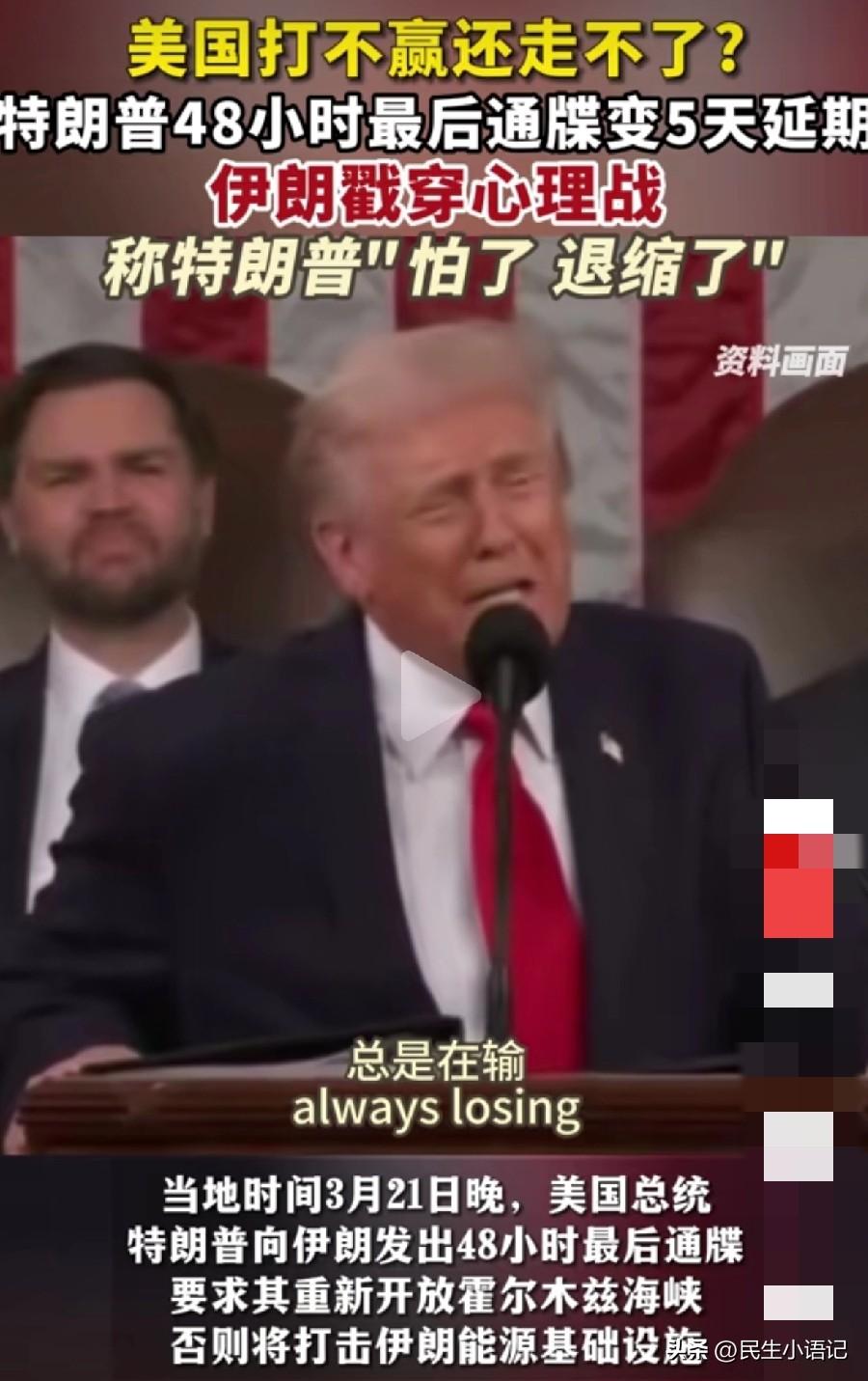 美国的这波操作,到底是在施压还是在“秀操作”?局势确实让人看不太懂。 当地时间3月21日晚,相关美方人员向伊朗发出48小时最后通牒,要求伊朗立即重新开放霍尔木兹海峡,恢复正常航运。 消息一出,国际油价应声波动,地区局势骤然紧张。伊朗方面态度强硬,明确表示不会在威胁下妥协。 可就在期限将至时,美方突然改口,宣布延迟相关行动,并寻求对话。这种前后态度的反复,让这场博弈充满了变数。 从强硬施压到临时退缩,这一通操作下来,美国既没达到预期效果,也未能展现绝对优势。而伊朗方面顶住压力,未被轻易拿捏。 这场博弈更像是一场复杂的博弈,看似气势汹汹,实则进退维谷。大家对此怎么看,欢迎在评论区聊聊你的见解。