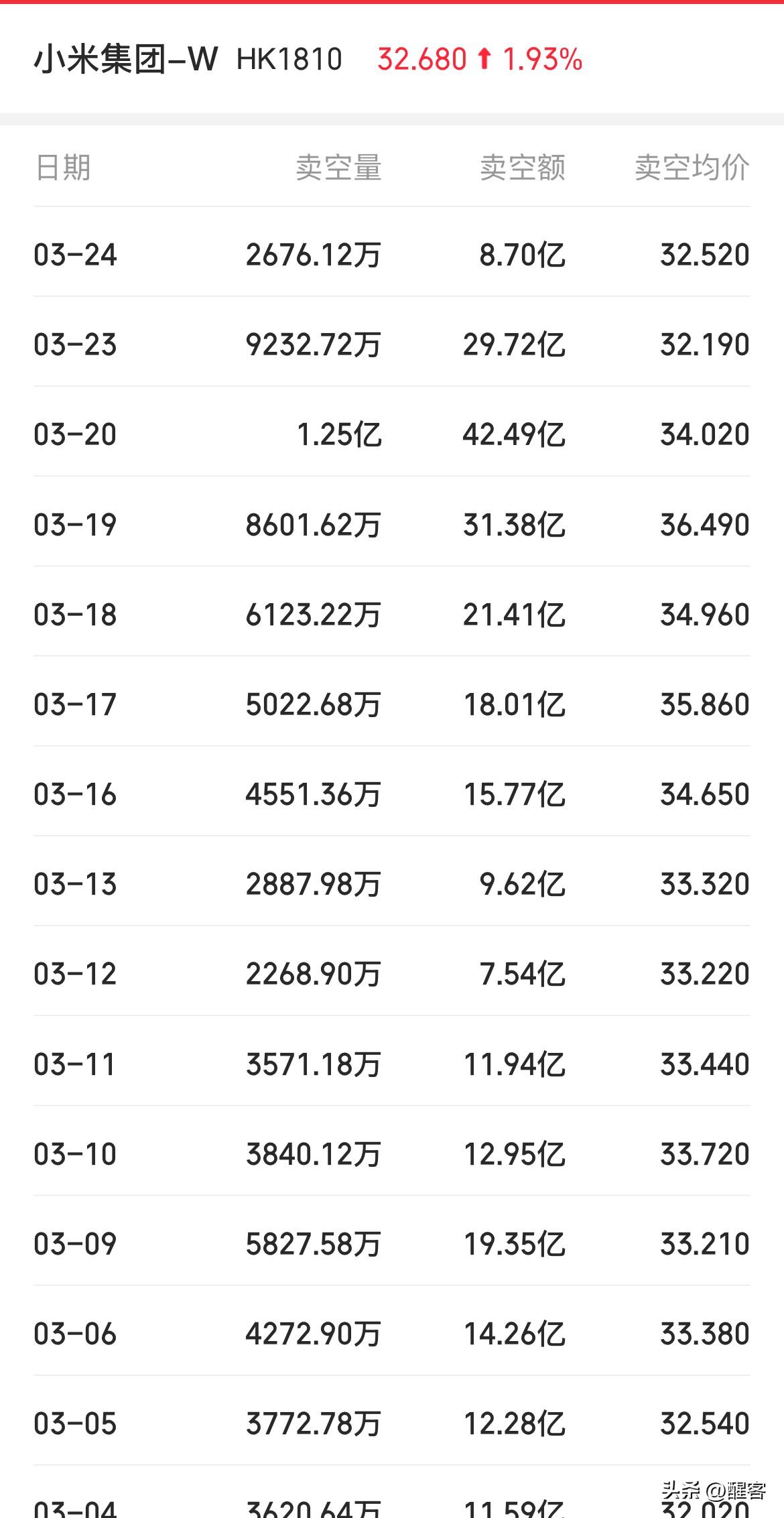 腾讯、阿里和小米近期卖空数据。三家公司均经历了一轮回调,卖空量显著收缩,说明做空力量在减弱,短期下跌动能已大幅释放,但尚未出现明确的见底信号(如放量长阳、突破关键均线)。 分别来看: 腾讯基本面稳健,若500港元支撑有效,且成交量温和放大,大概率形成阶段性底部;若跌破500港元,可能下探480-490港元区间。 阿里若后续卖空量持续低位,且股价放量突破125港元,可视为阶段性底部信号;若跌破120港元,可能进一步下探。 小米32港元附近有一定支撑,但需站稳33-34港元区间,且卖空量持续低位,才能确认阶段性底部;若跌破32港元,可能下探30-31港元。