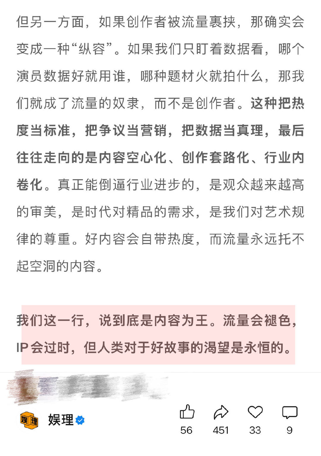 业内谈长剧先定流量再过会现象 未来演员演一个戏或许只需3天5天 傅斌星谈华策用“三条增长曲线”来保证公司的生命力:一是内容,二是AI,“AI不只是工具,更是未来影视工业化体系的重要变量。”三是IP的全维度开发。“只有把内容价值做长、做宽、做深,企业的抗风险能力才会更强。” 此外,国剧出海仍然是一个非常重要的增量空间…六大制片人谈长剧未来↓