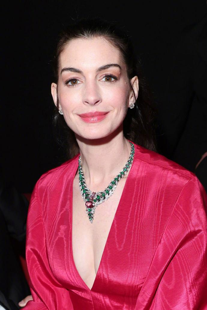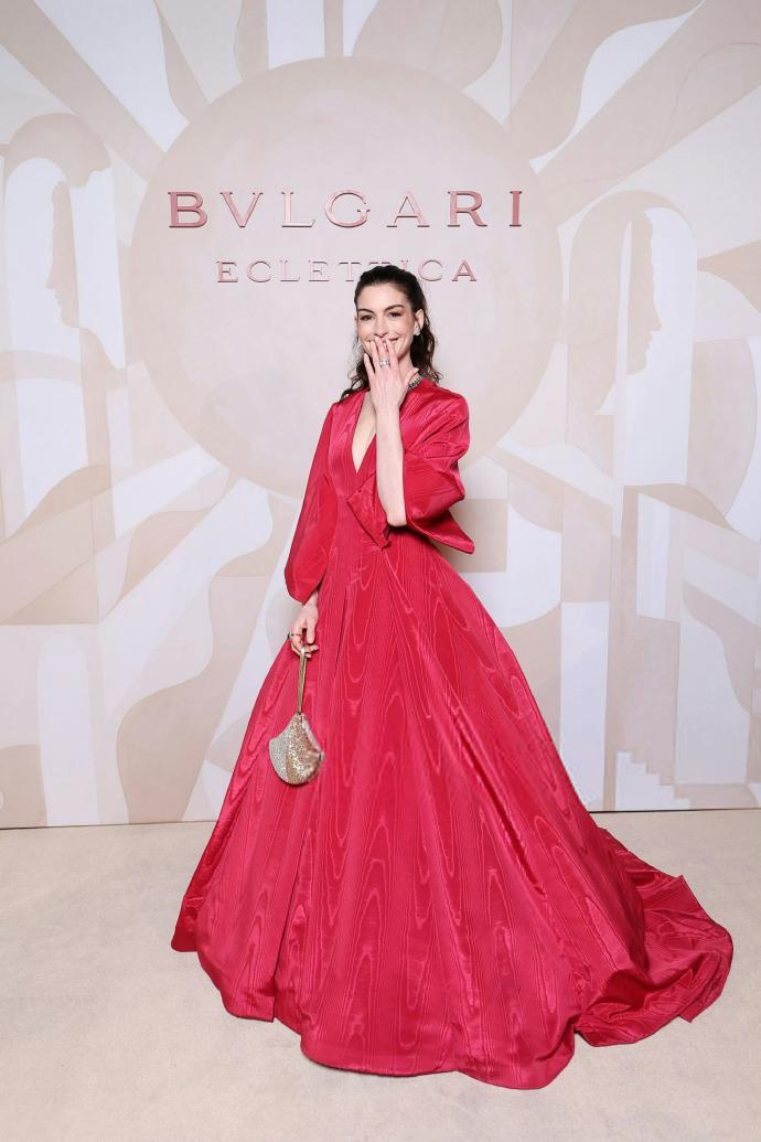 冻龄女神安妮海瑟薇,老了依旧是甜美公主。 3月24日,安妮.海瑟薇作为全球品牌代言人在米兰出席2026宝格丽ECLETTICA 高级珠宝全球发布会。 安妮海瑟薇穿着一袭海棠红Valentino高定礼服,搭配Eclettica万象艺境高级珠宝系列的谧园流光Secret Garden项链,贵气华丽。 肌肤光泽细腻,高扎马尾大卷发,笑起来的时候,真正是甜美动人。 谁能看得出她如今已经43岁了? 看起来依旧是《公主日记》里那个甜美又俏皮可人的公主,美翻了。